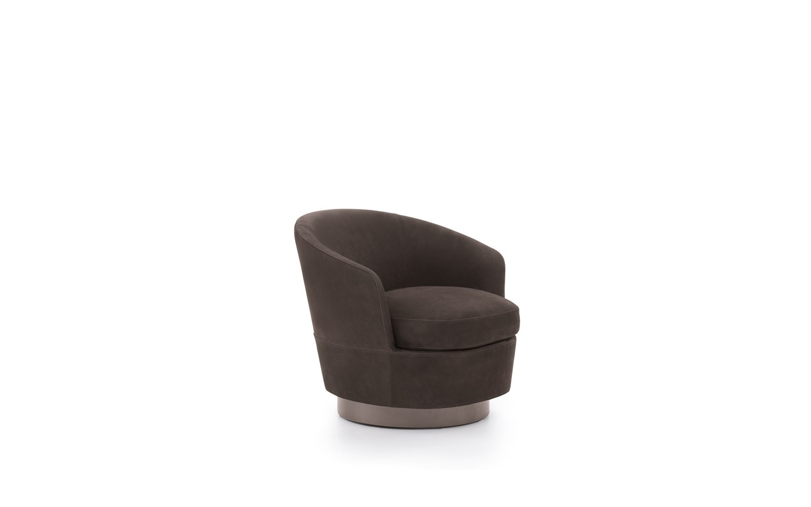 Sofa bases are semi-curved metal blades; armchairs and ottomans have full perimeter curved bases; both with a polish anti-fingerprint Bronze varnished colour and come with adjustable feet. The base of the armchairs is available with 360° swivel movement (without return) or fixed. Black protective polyethylene glides.