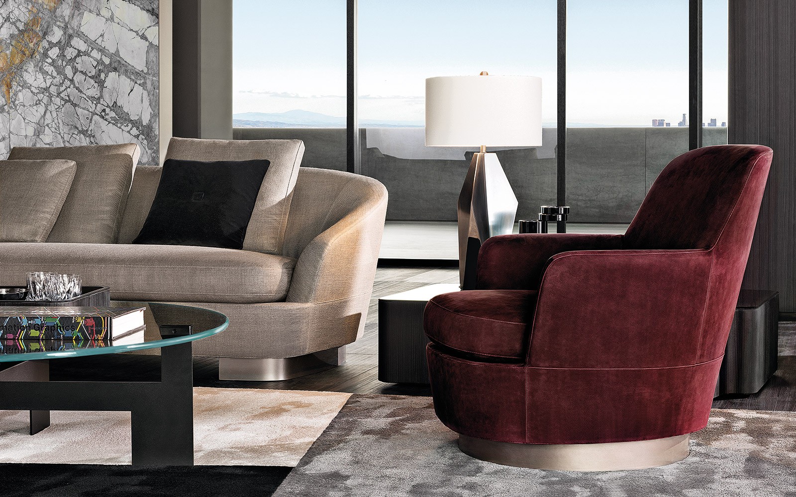 All of the seating elements share the enveloping lines that offer a pleasant sensation of welcoming warmth, thanks to the soft cushioning in the seats and backrests. Structural perfection and flawless tailoring underscore the high level of expertise achieved by the company over the years and are the consummate expression of its masterful craftsmanship.