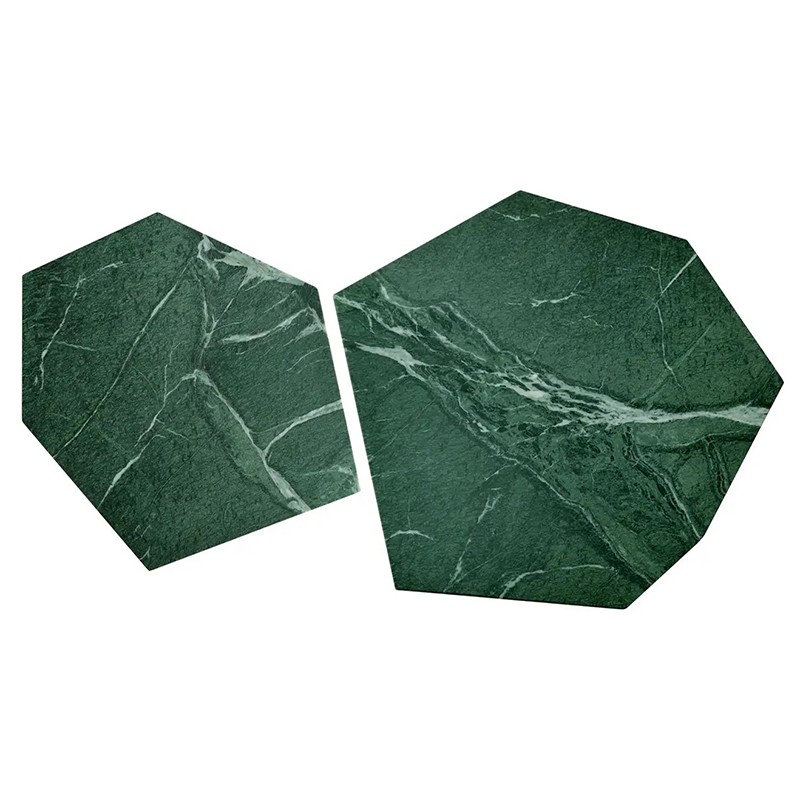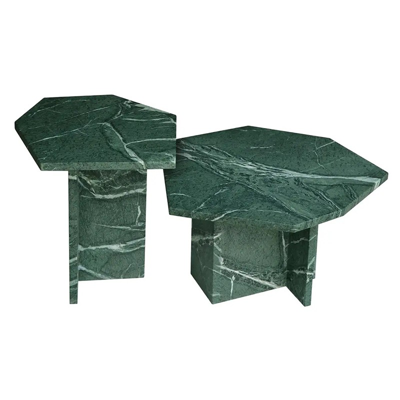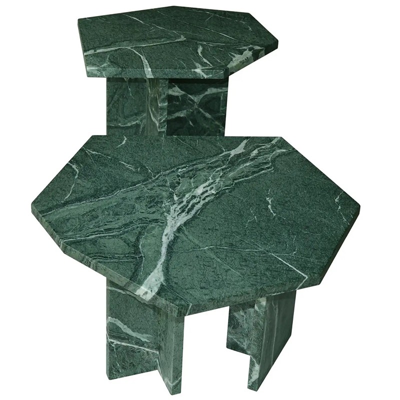 Italian design style set of two coffee or nesting tables in Italian Green marble handcrafted by our craftmen.
