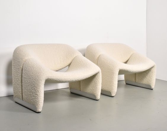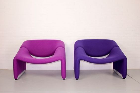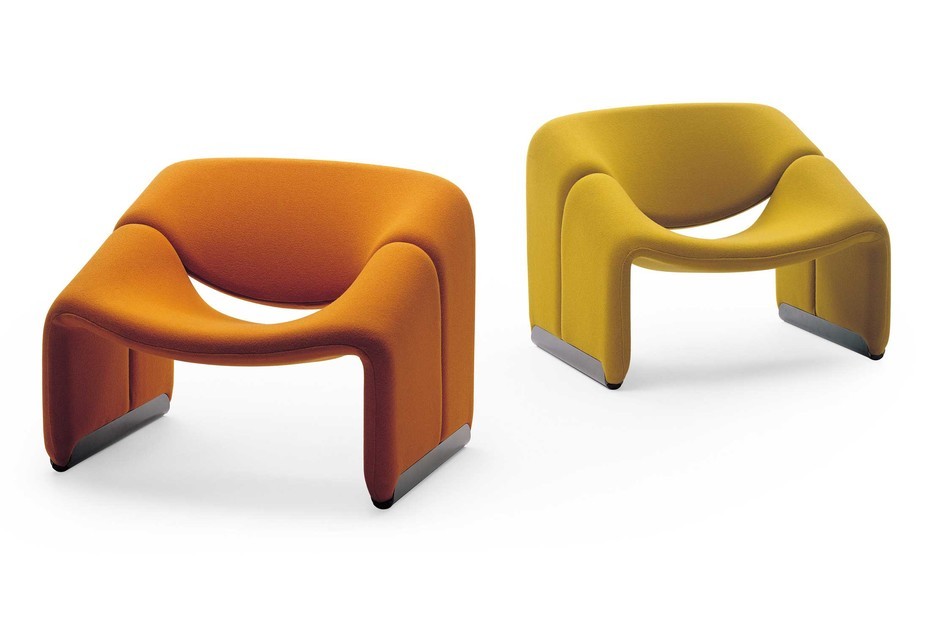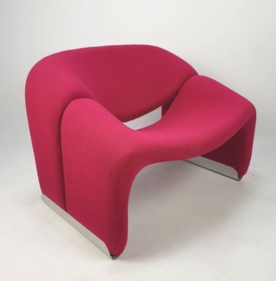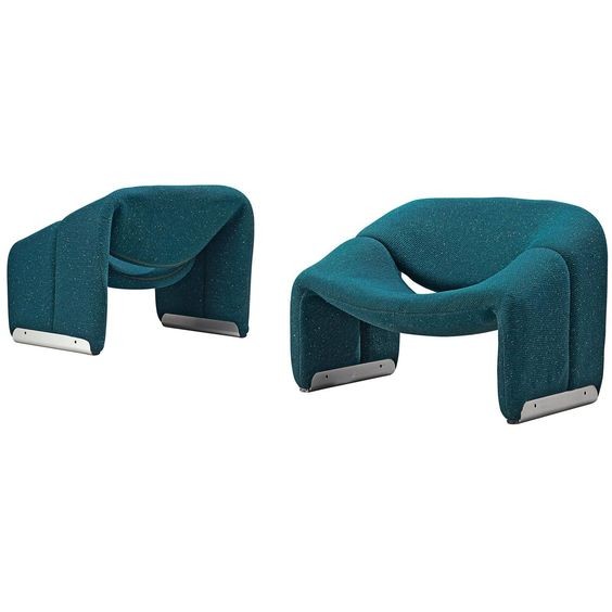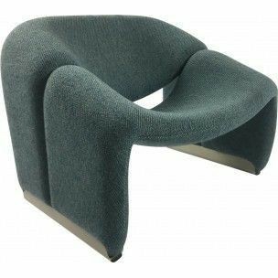 Cute and very comfortable "M" chair, designed in 1966. This is the first edition. The curves are beautiful. Decorated only in lovely quality wool fabric (leather and tech cloth, custom fabric), the chair is small but very comfortable. A piece of art in your room!
