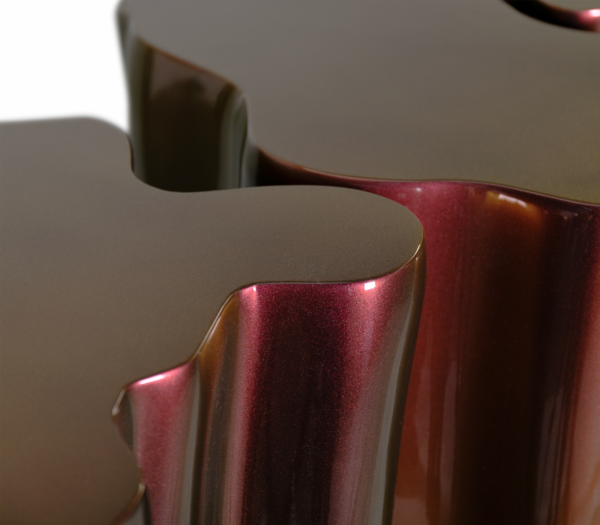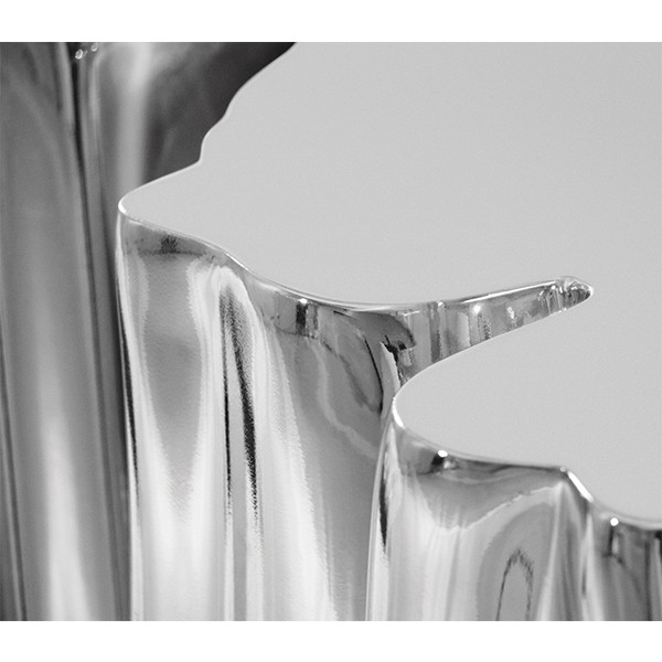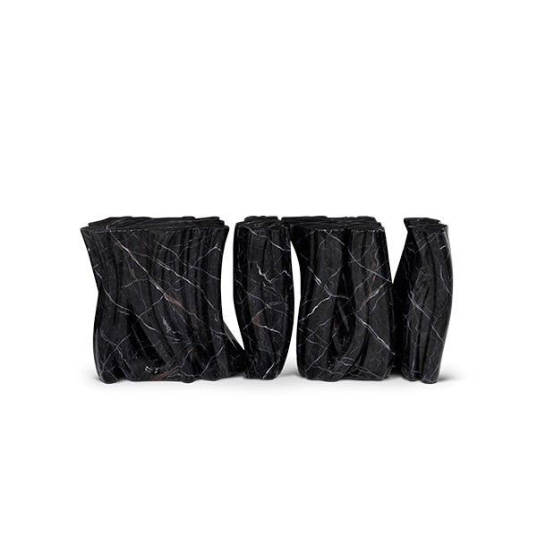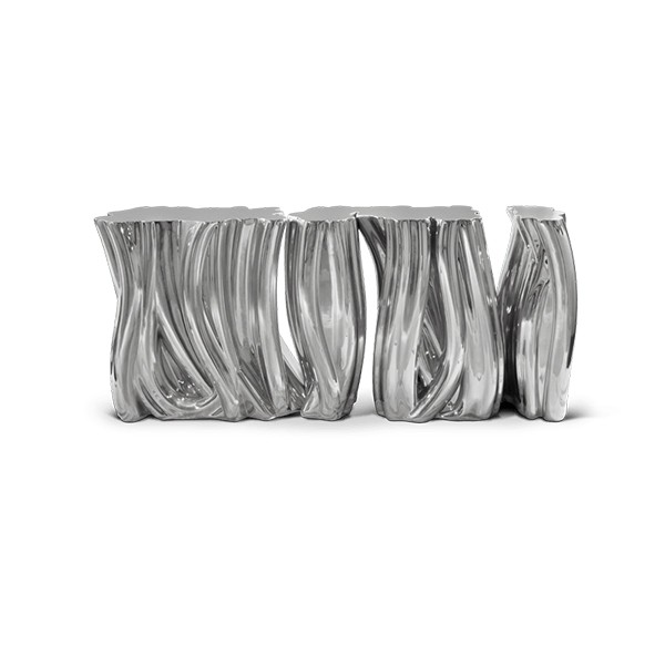 Carefully built from resin, the Monochrome is composed by three separate modules, covered by an exquisite gold finish with a black gradient hint as result of advanced experimentations, and finished with a high gloss varnish coat. An avant-garde console that conveys a seductive and fearless attitude due to its unique and challenging design.