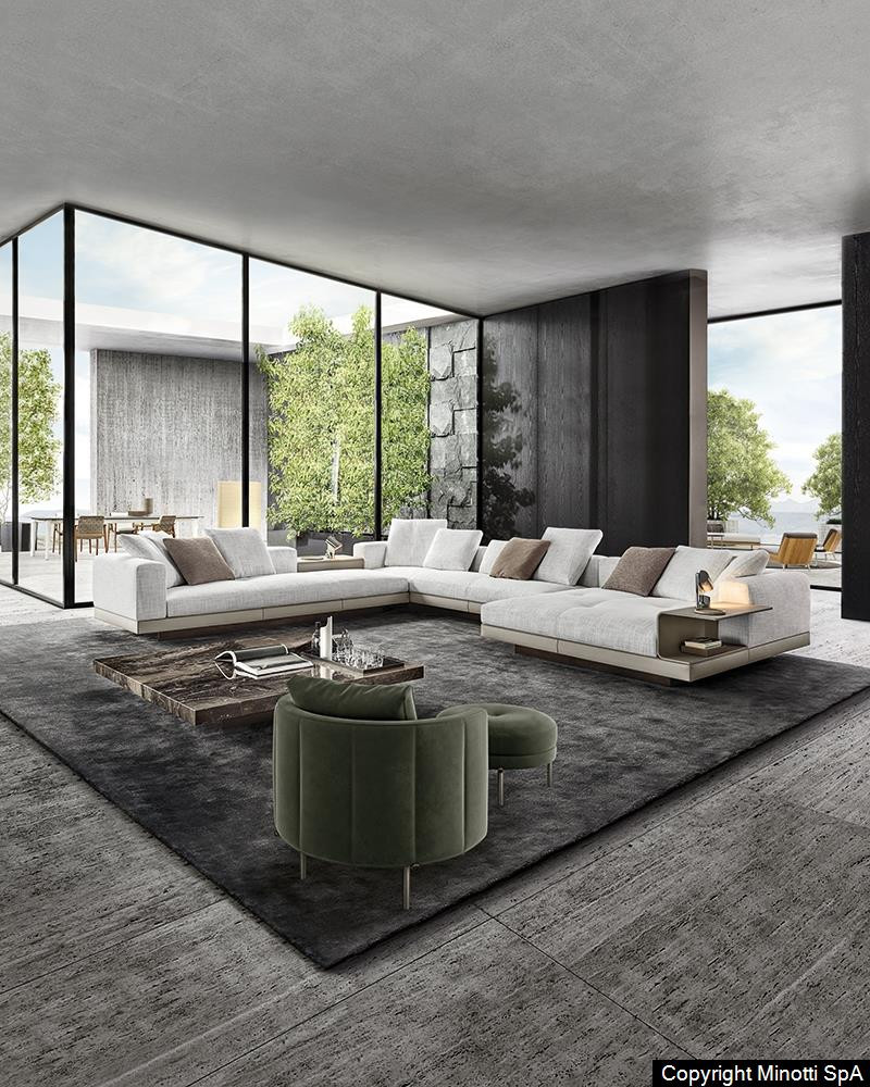 Contemporary, with a strong architectural appeal and pure lines reminiscent of the Mid-Century American spirit, the Connery seating system sports an exquisite aesthetic and design that instantly catch the eye. The clever combination of fine materials and sophisticated details adds a hint of couture to its design.