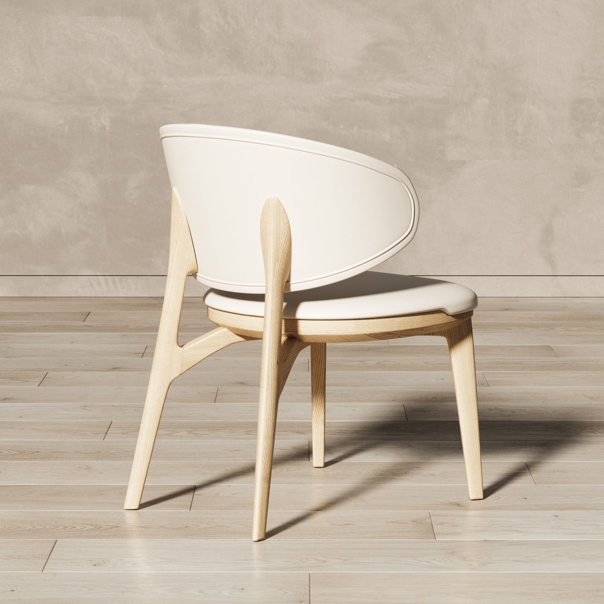 Contemporary sophistication is provided by the curved silhouetfes that defines the Elypse Dining Chair. The uniquely curved and rounded back rest not only offers comfort and support, it is the centre of attraction. Upholstered in a durable, long lasting vegan leather on a solid bleached China ash wood frame, the Elypse Dining Chair will last the test of time. Suitable and graded for commercial use.