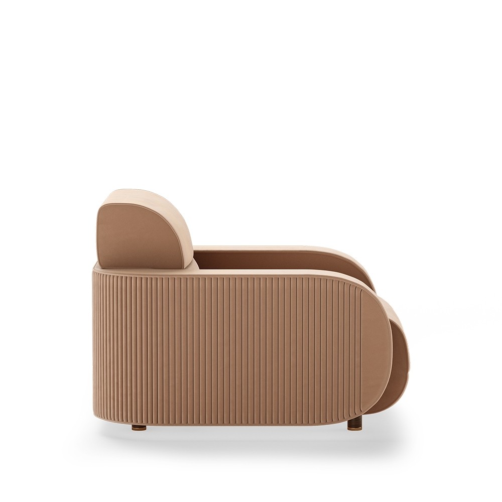 Rollins is the perfect armchair to fulfill your sophisticated mid-century project. The pattern design on the arms and back, combined with the brass base, made this armchair an elegant choice to be the spotlight in any living room.