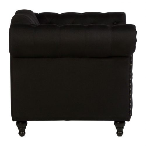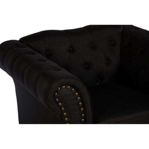 Beautiful black fabric upholstery with renewable eucalyptus wood, button tufting and stud detail.