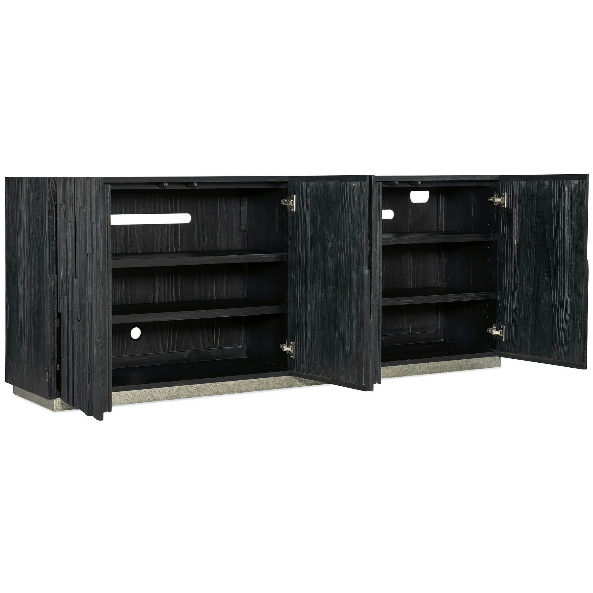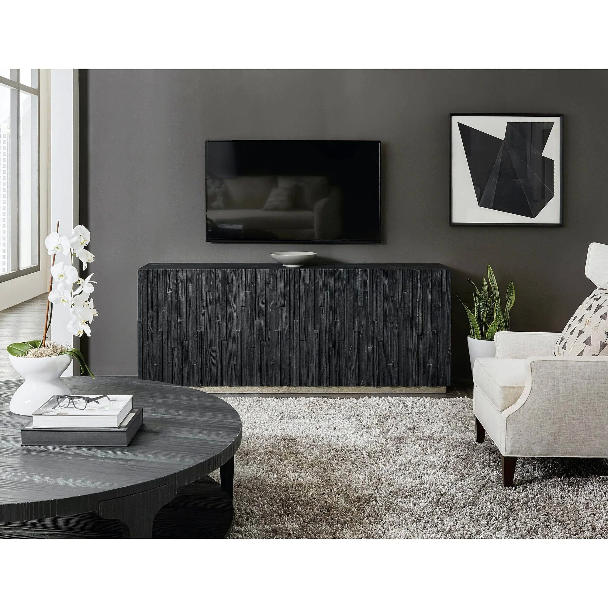 Functional and stylish. The stunning Chapman Shou Sugi Ban Entertainment Console adds the finishing touches to a living space.