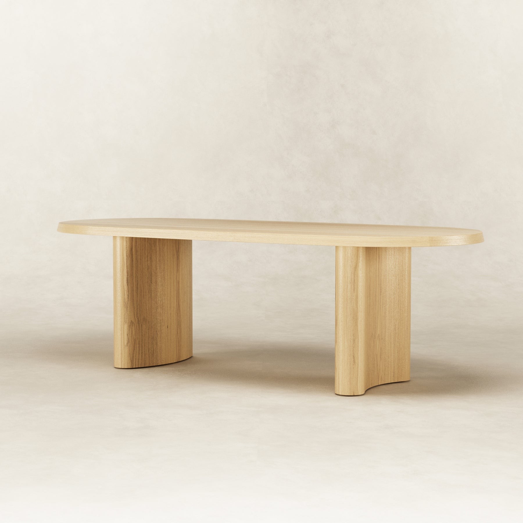 The graceful simplicity of the Ash dining table allows the bleached American ash wood to be the hero that shines through the soft curved pillars. Spanning 2.4m in length, 6 seats can generously fit around.