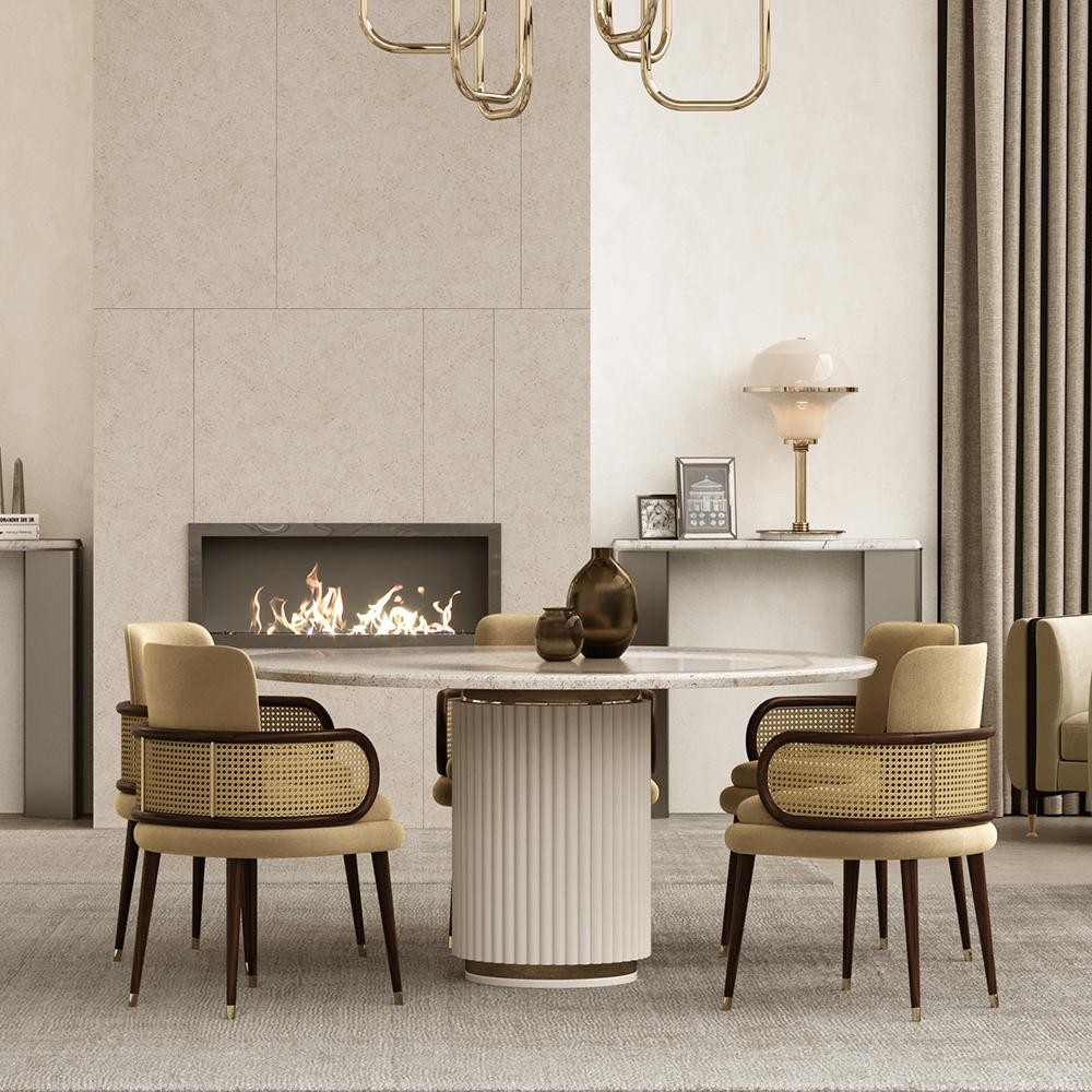 Delicate yet powerful, the Mulligan’s design is notable for its dazzling little details. The geometric foot covered by an edgy paneling contrast with the luxury marble hues on the tabletop. The Mulligan dining table is a light approach to the mid-century style, bringing in a fresh look to any modern design. As Mulligan revolutionized jazz music, this dining table is a versatile piece able to transform any space into a harmonious and stylish one.