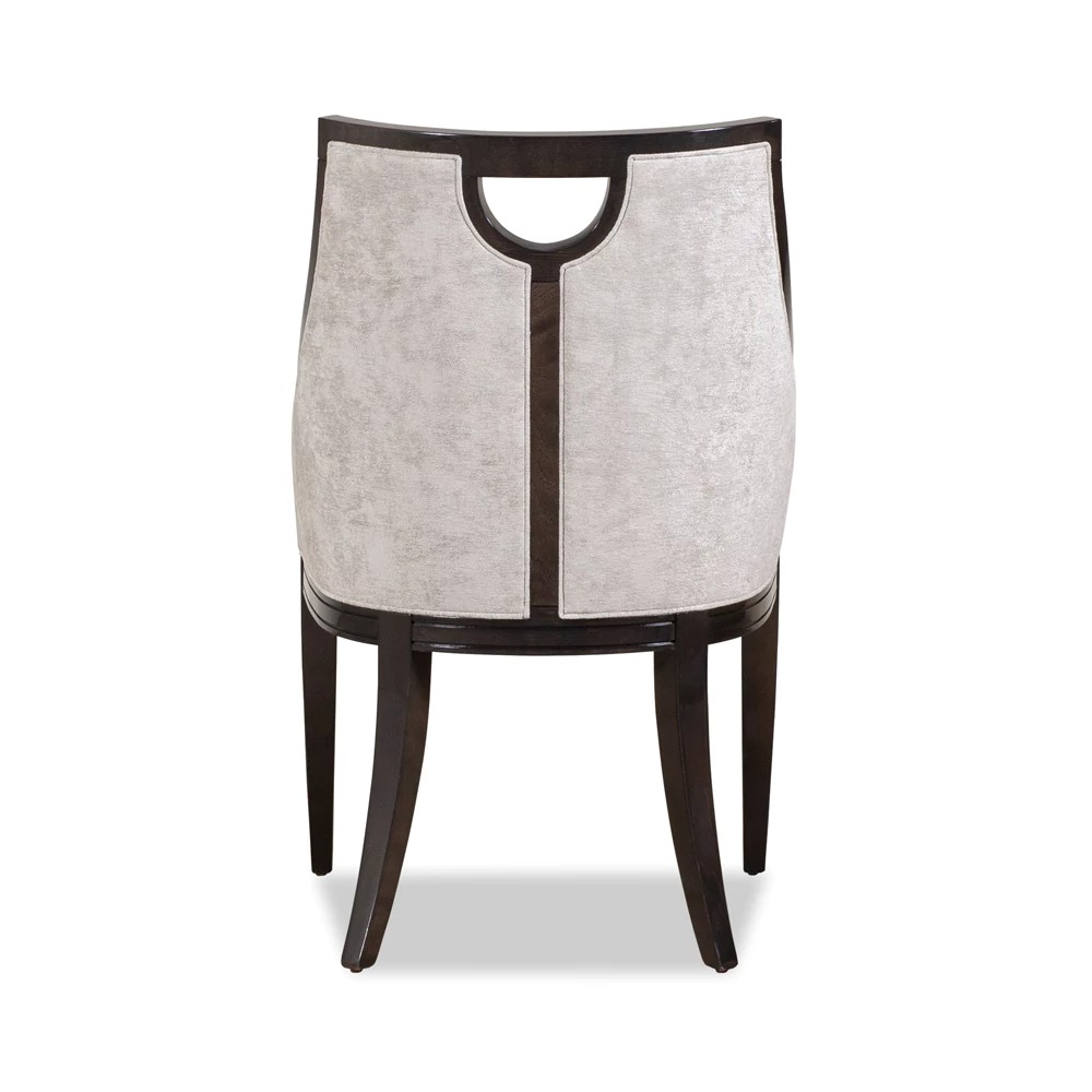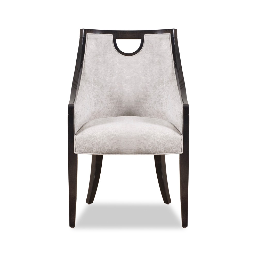 Art Deco tones in a Dark Walnut Moka high gloss finish define these designs. These chairs are upholstered in the finest velvet fabric, allowing for a relaxed and comfortable dining experience. Dining chair, height 93 cm x width 59 cm x depth 60 cm. And Armchair, height 93 cm x width 59 cm x depth 60 cm – with an arm height of 61 cm. Seat heights 50cm. Available in variety of fabrics, leathers and finishes. Prices will vary. Dining Table also available.