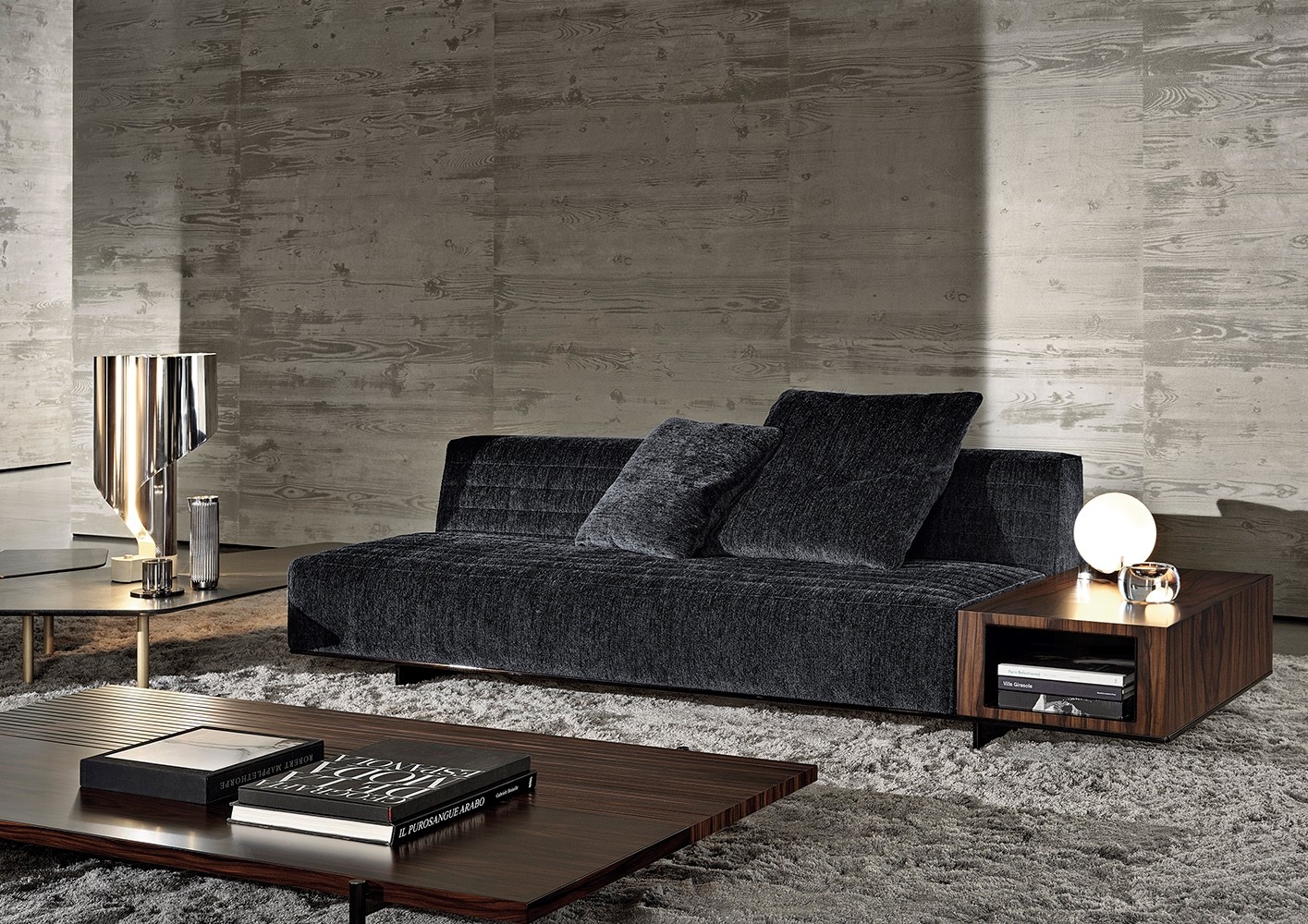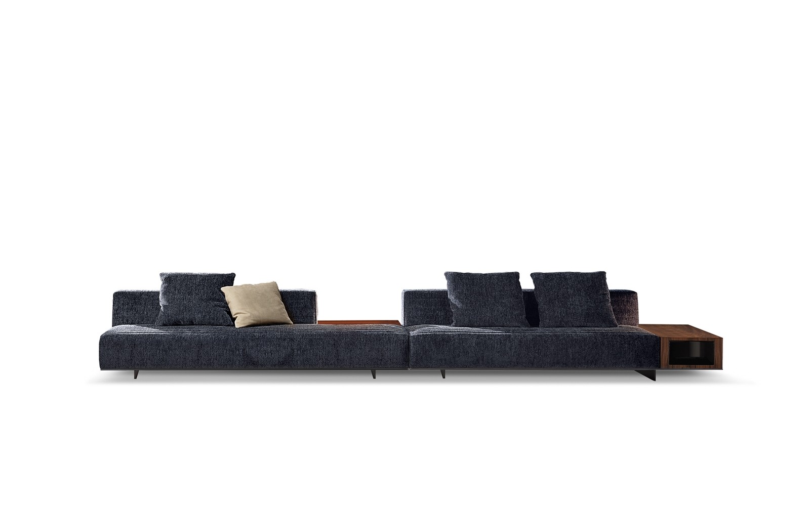 The elements can be freely customised with high and low backrests, different types of armrests and the option of adding elements functioning as tops and containers, jutting out at the back, or at the end, next to the seat. A system, or rather a super system, capable of creating countless interpretations and configurations, for both residential and hospitality spaces.