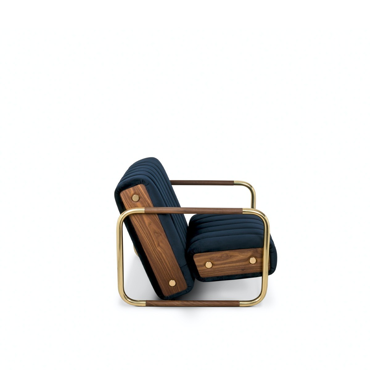 You’ll find a beautiful velvet in its classical elegance, along with a comfortable structure in polished brass and walnut wood in this armchair that you won’t resist adding to your living room or to your next contract project.