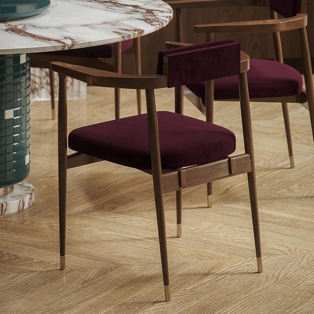 Inspired by one of the cinema starts, the Gardner dining chair was thought to be the elegant touch in most contemporary projects. Made of solid walnut wood, the polished brass details give a luxurious touch that emphasizes its beauty.