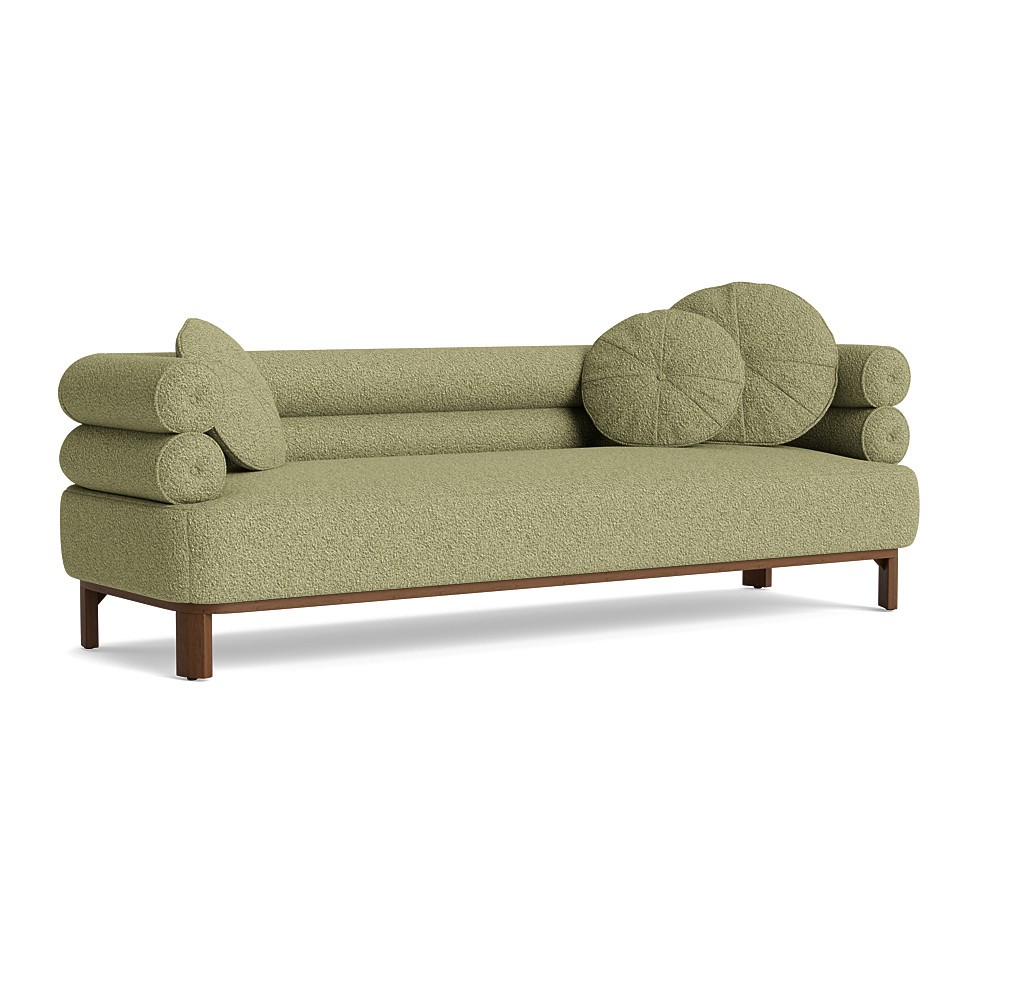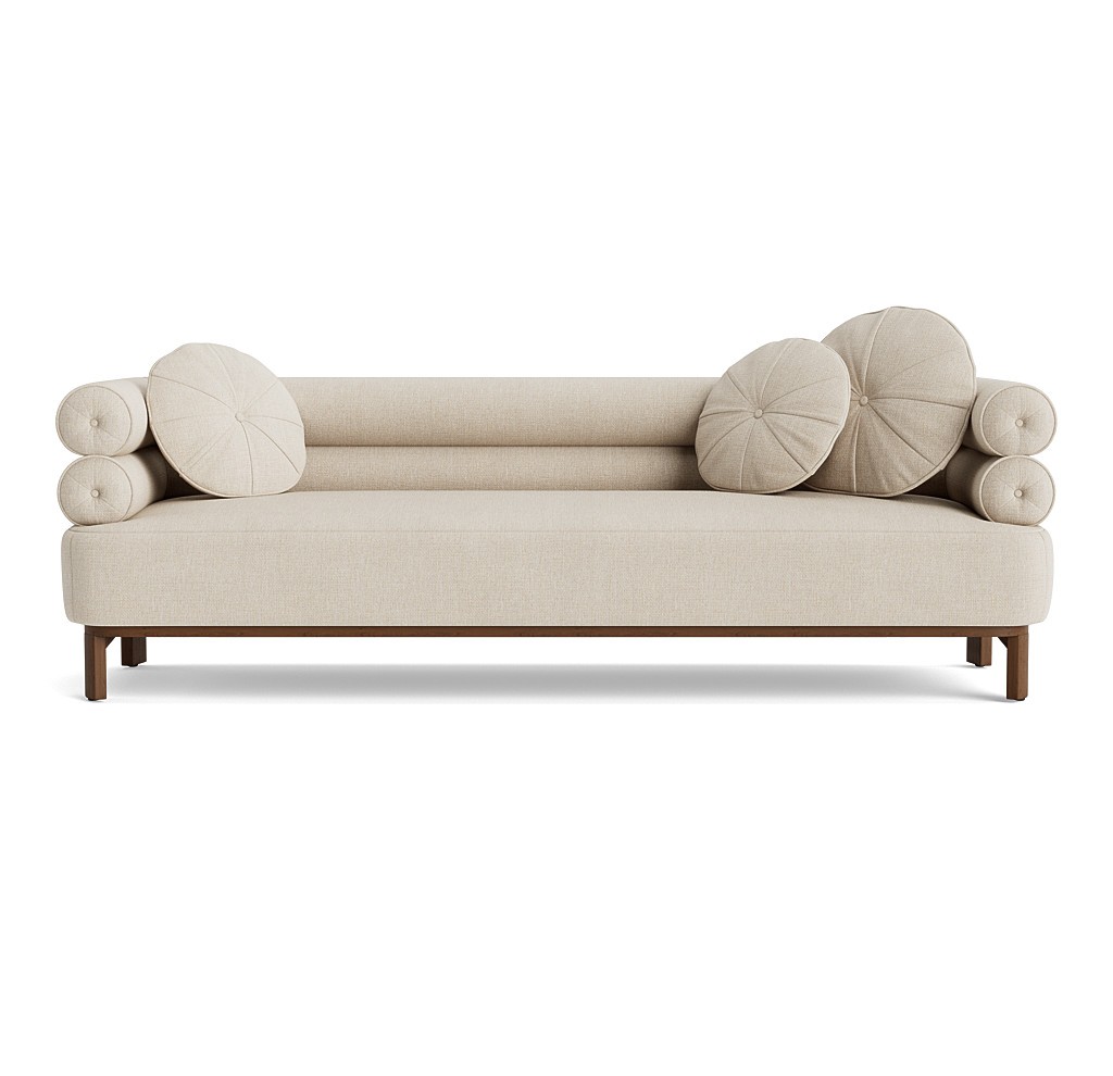 Balancing architecture, high-fashion, and Art Deco curves, the Lucy collection brings a statement-making focal point to a room. Two rows of distinct tube-like cushioning offer sheltering comfort while loose round pillows add a level of modern sophistication. Seated on a warm wood frame with angled legs, this collection includes a sofa, chair, and a choice of right or left arm day beds. Available to customize on hundreds of fabrics and 20+ wood finishes.