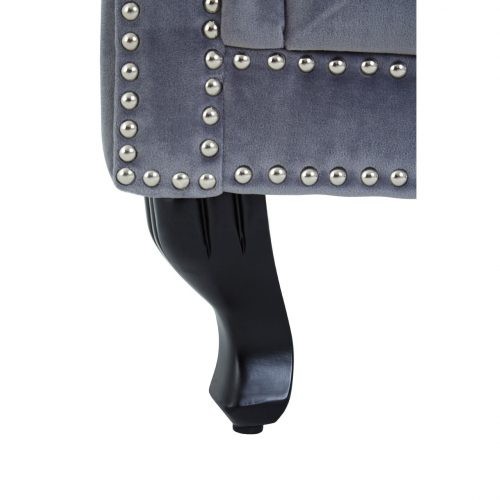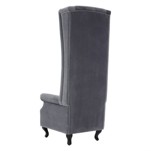 Bringing a regal touch to your home. the elegantly designed tall porter chair from our OEHOME range, will give your room substance, style and total comfort. The solid and sturdy frame is made from robust wood ensuring durability, while being upholstered in luxurious black/grey cotton velvet guarantees a soft to the touch feel. The porter design features a high back rest with refined button detail giving the chair its traditional look. The seat, also featuring button detail. has deep padding ensuring total comfort when seated. The gently curved armrests emphasise the grandeur look which is further accentuated by antiquated silver studs detail that adorns the frame of the chair. Four effortlessly curved legs, with a chrome finish, enhance the regal design while making sure that the chair is stable and sturdy. A wonderful feature in your bedroom or living space, the porter chair will create an eyecatching piece of furniture in your room. Enveloping your body for total comfort, the beautifully styled porter chair from our OEHOME collection complements most decors bringing its own grandiose to the setting.