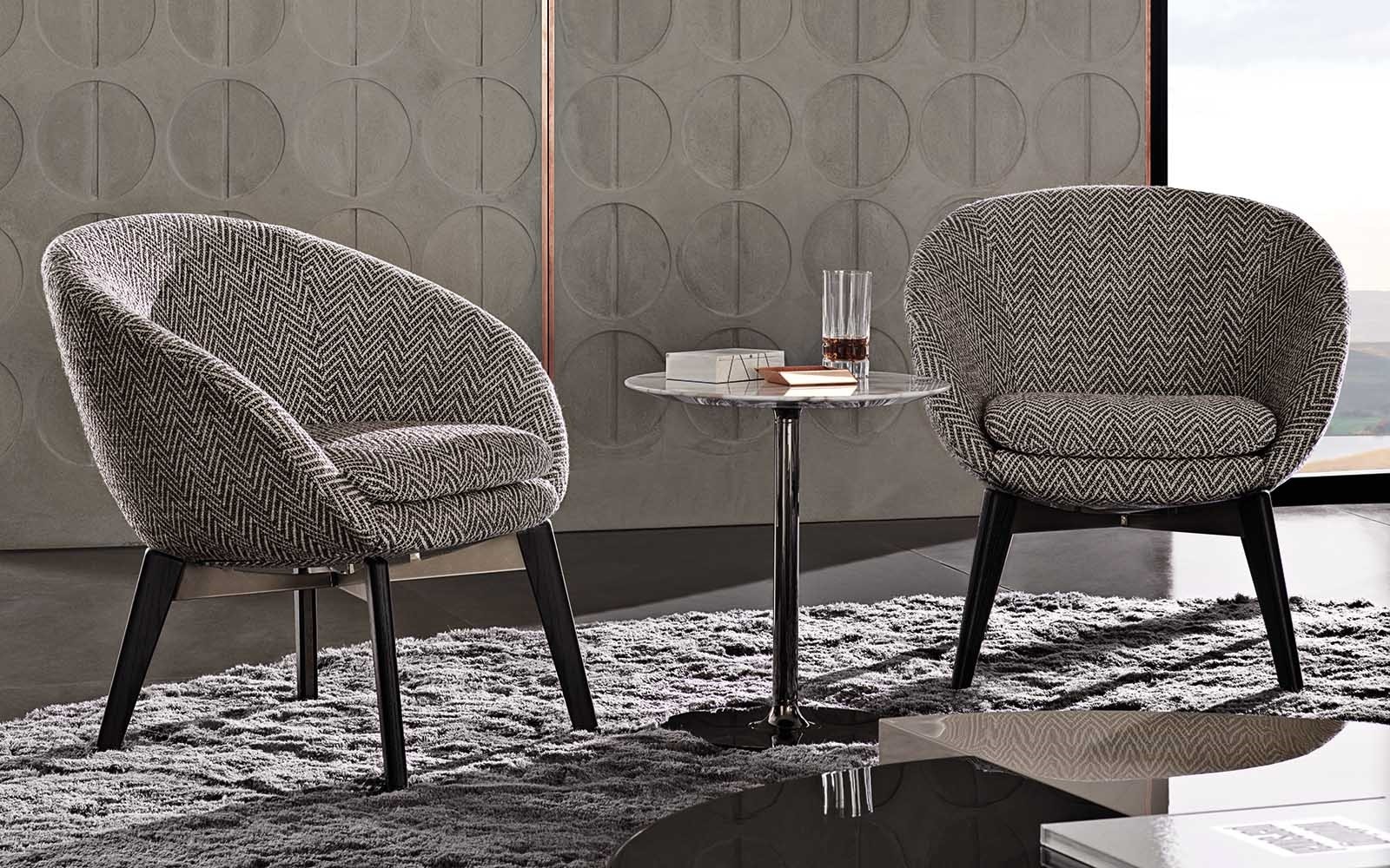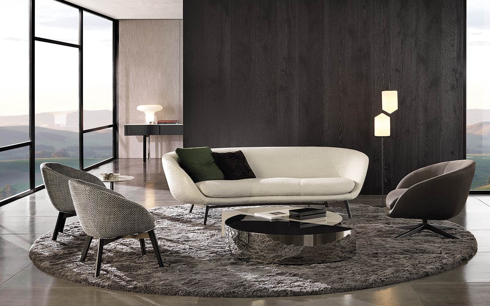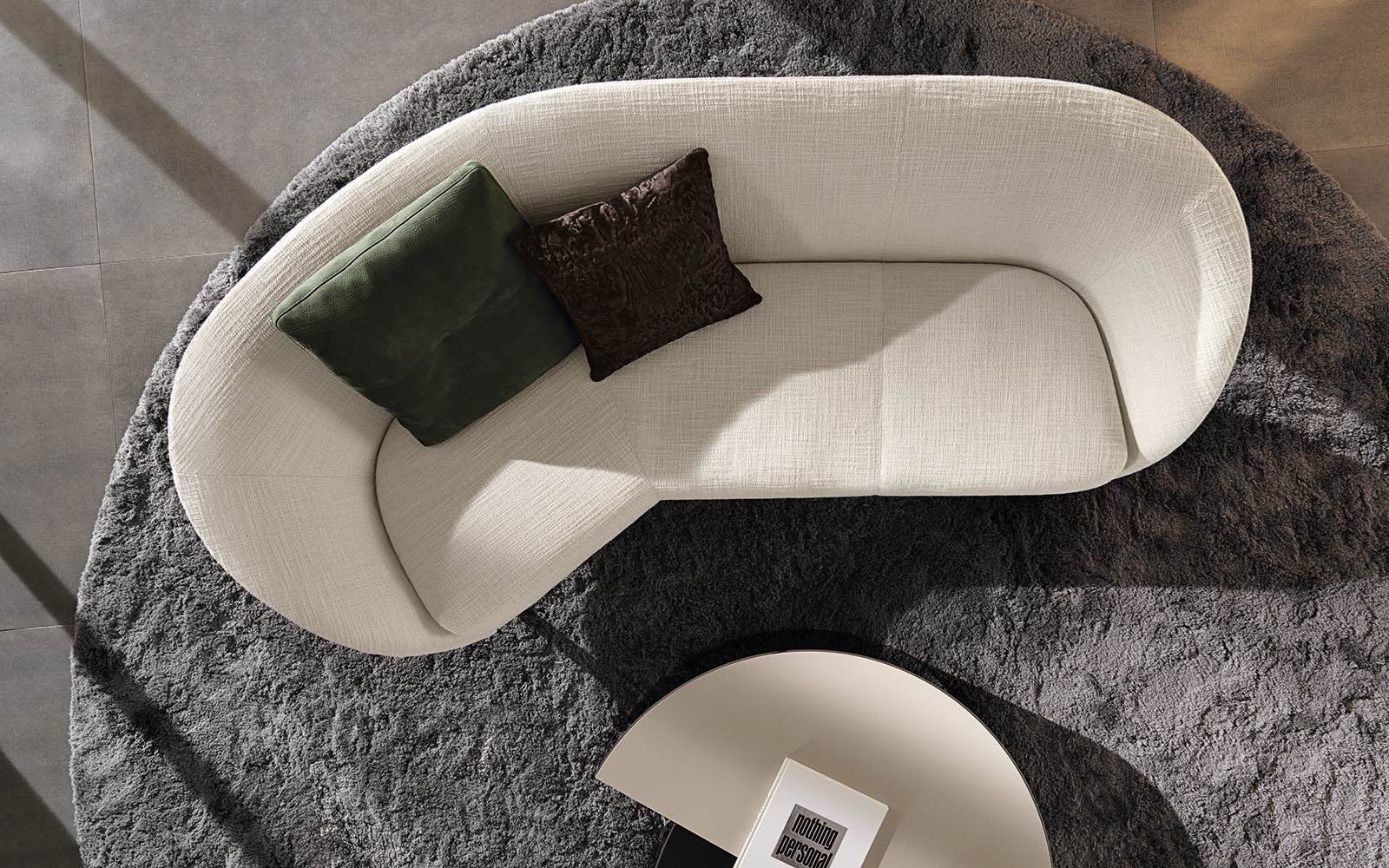 The shape takes up vintage lines, modernising them with an incredibly sophisticated silhouette that involves both the seat cushions and the external covering, which comes in fabric or leather, for a combination of textures of great charm.