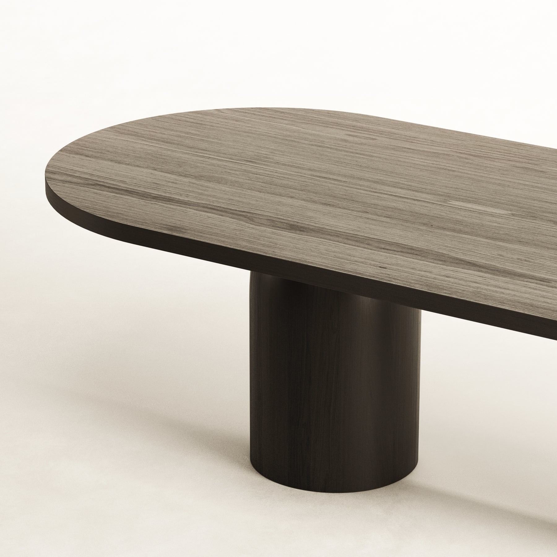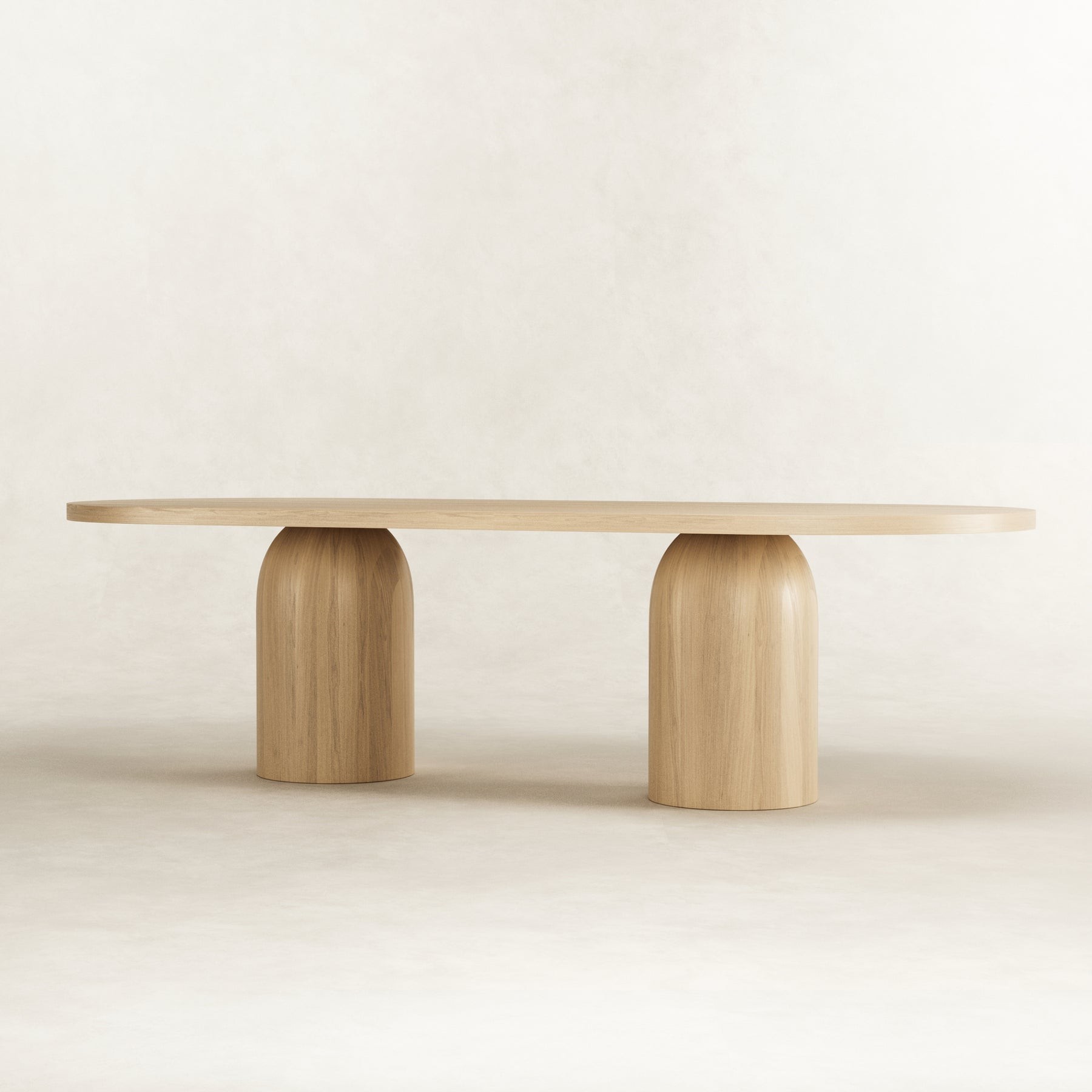 The Bullet wood dining table evokes architectural structure and form with its featured domed base being the centre of attention. Crafted by hand from a combination of solid and ash wood veneer, the dining table is neutral in finish giving it a warm look that will blend in with most colour schemes. An intricate design to manufacture, ensuring stability, form and aesthetic appeal all in one magnificent table. Measuring a generous 2.7m in length, 8-10 seats should fit comfortably around this designer table.