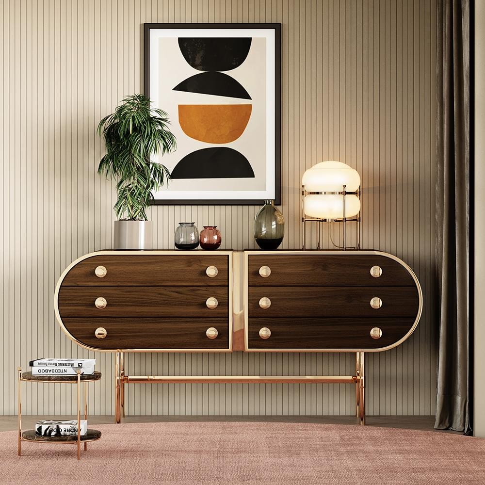 The retro-chic design from the Moryson Sideboard was the pure inspiration that brings the 60’s design legacy reborn in this new concept. With six drawers finely accentuated with stylish handlers that seem to give us the illusion of a safe box, this sideboard is the best choice for all mid-century admirers.