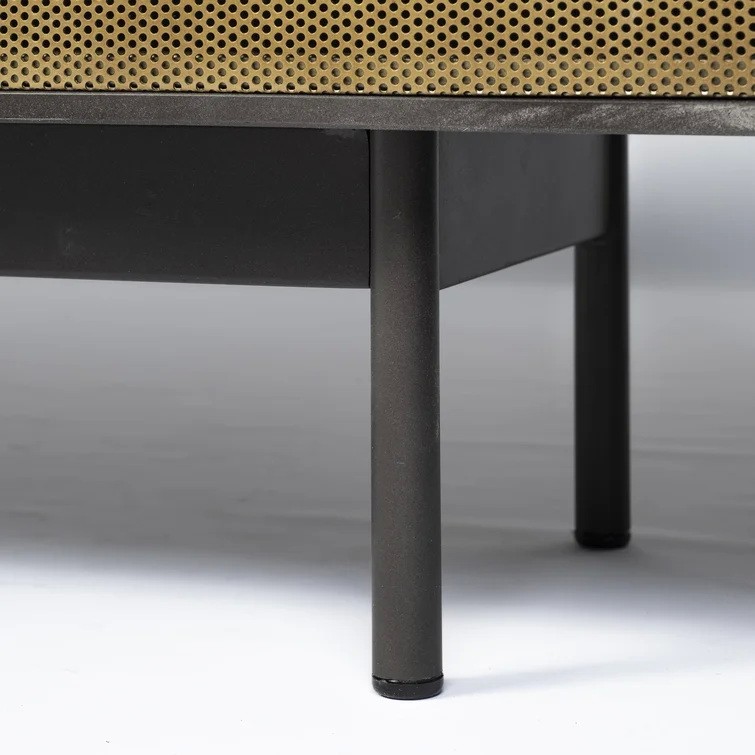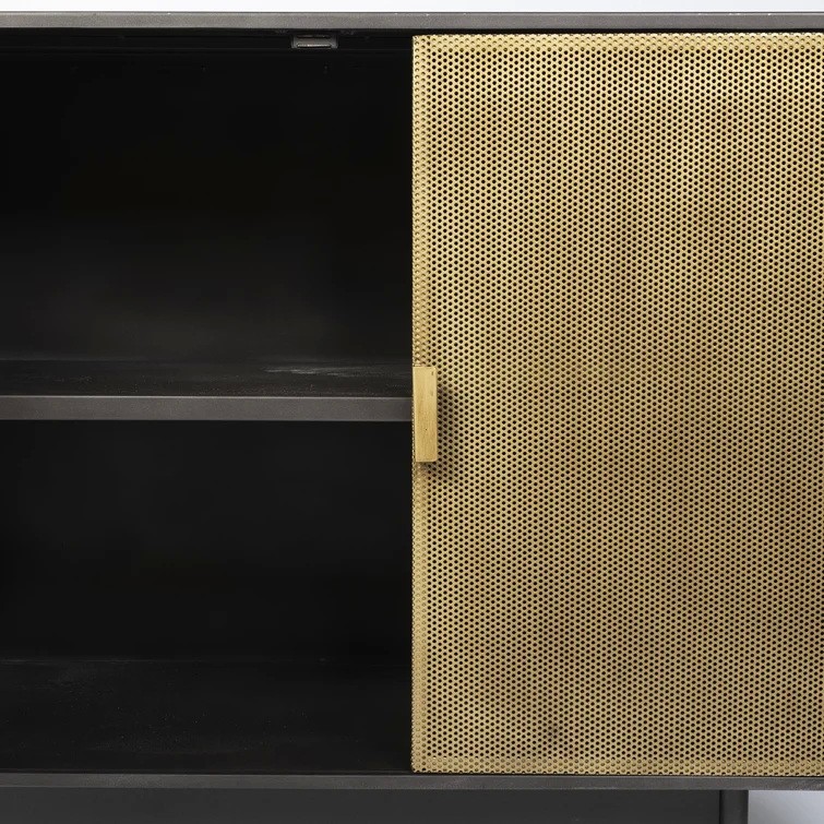 This is a spectacular sideboard that is guaranteed to elevate your space. It offers ample storage space for a wide variety of items ranging from kitchenware and table linen to décor and accessories. The doors add a touch of vibrancy to this piece. It is a sturdy, functional, and visually enticing addition to any dining room. Built to stand the test of time, it guarantees exceptional stability and balance while ensuring that your kitchenware and other items are securely stored. Designed to suit industrial homes, it flaunts an all-metal construction in a radiant, two-tone palette with a sleek silhouette, perforated patterns, and exposed door hinges.