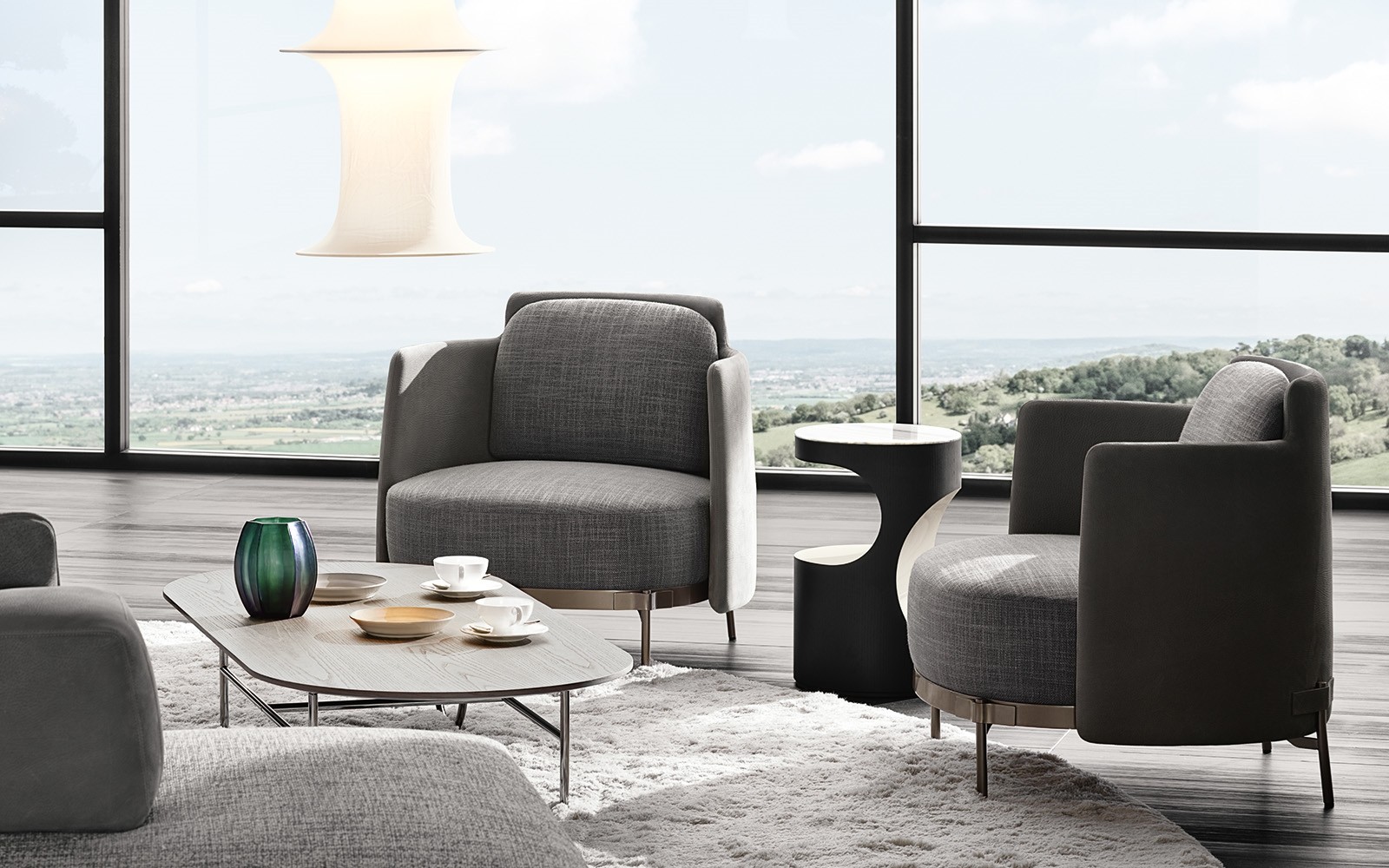 Sofa is a collection of seats with a strong personality, characterised by the light silhouette, and consists of a comprehensive range of models: armchair with and without armrests, lounge armchair, two and three seater sofa and ottoman.