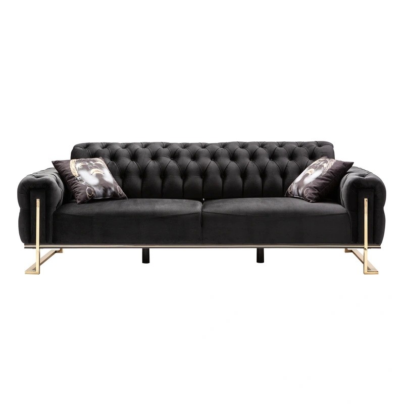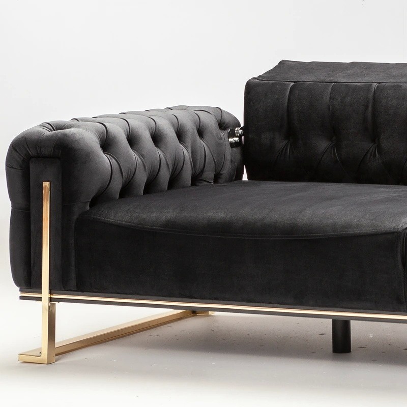 Anyone with a penchant for unusual furniture should take a closer look at the Tokyo Sofa. This is where modern optics meets traditional features. The backrest features a trendy pattern, adding a retro vibe to the sofa. Also, the combination of golden metal feet and two decorative cushions - every furniture lover's dream.