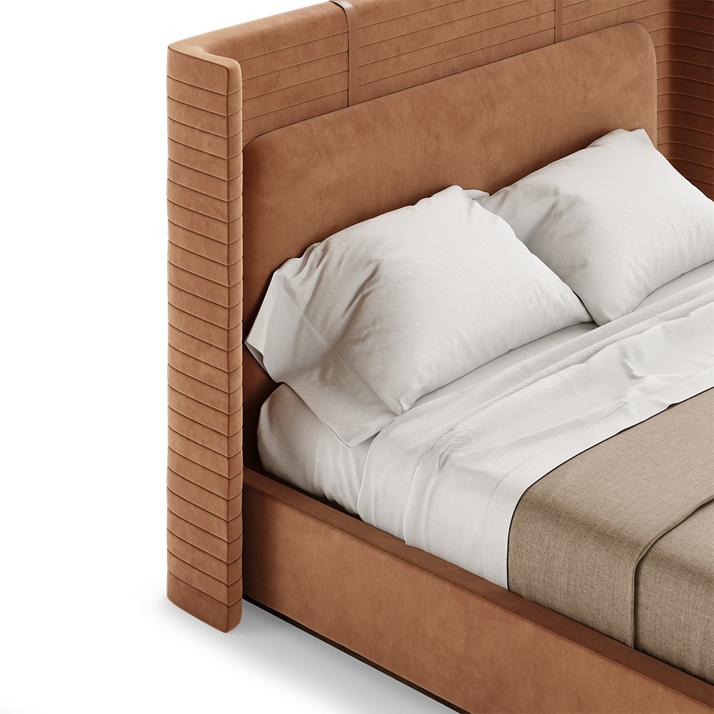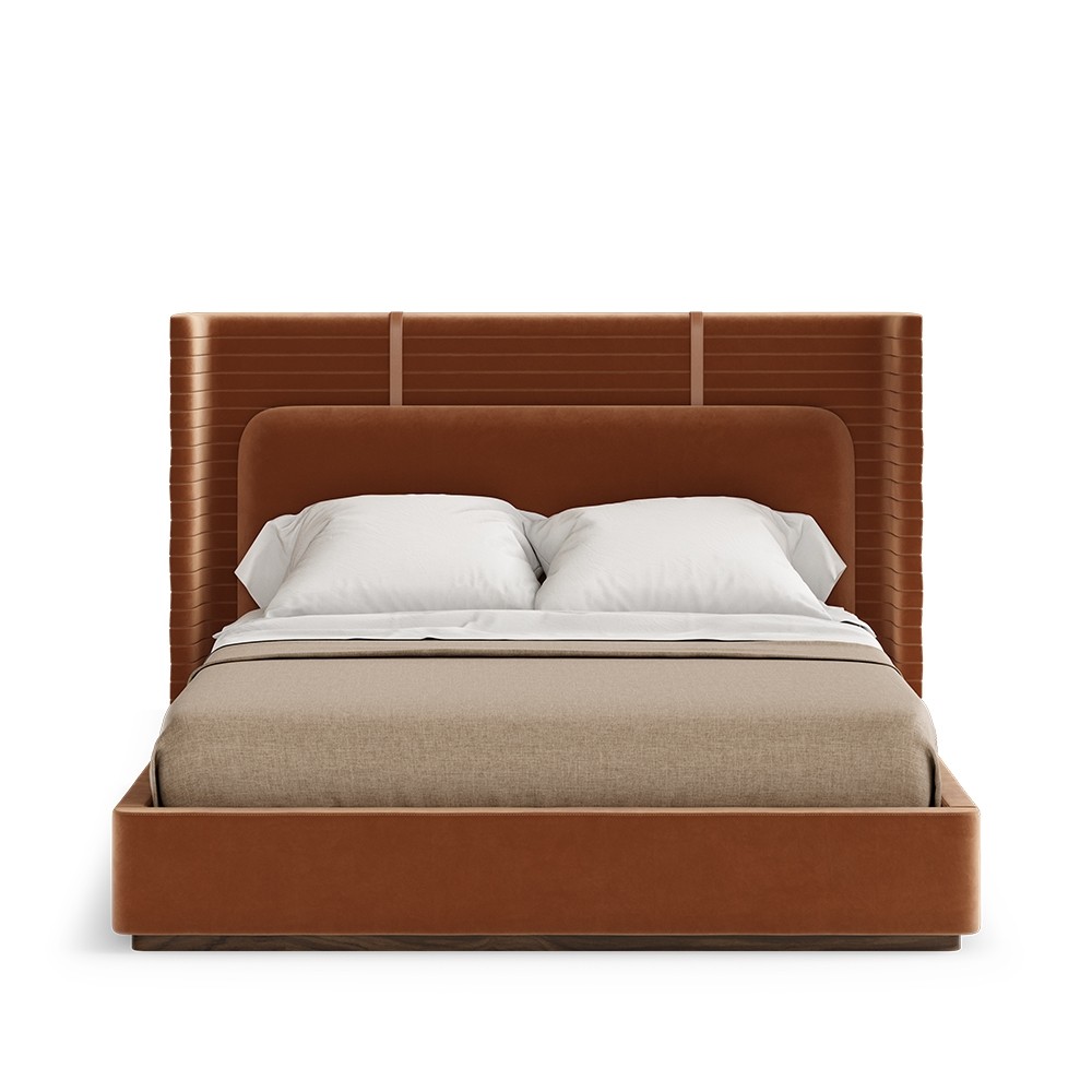 The Perry bed conveys a fresh vision of mid-century to the bedroom design. The eclectic mix of the vintage aesthetic and clean lines brings back the elegance and charm from that time to contemporaneity, combining it with the modern simplicity, represented in straight lines of the headboard, in a sophisticated way.