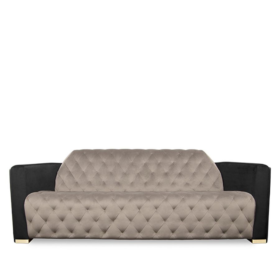 Navis brings with itself the strength of an era. A symbol of courage and daring. The design meets comfort creating a strong but elegant piece. This sofa puts together velvet, leather and a touch of polished brass in order to offer a discreet but sumptuous contrast.