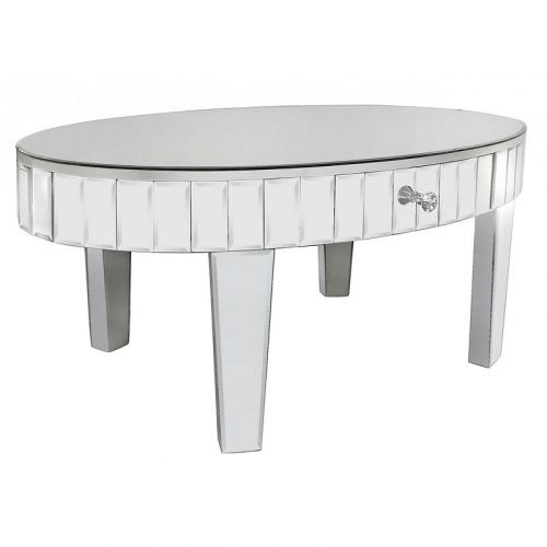 Stunning Mirror Oval 1 Drawer Mirrored Coffee Table.