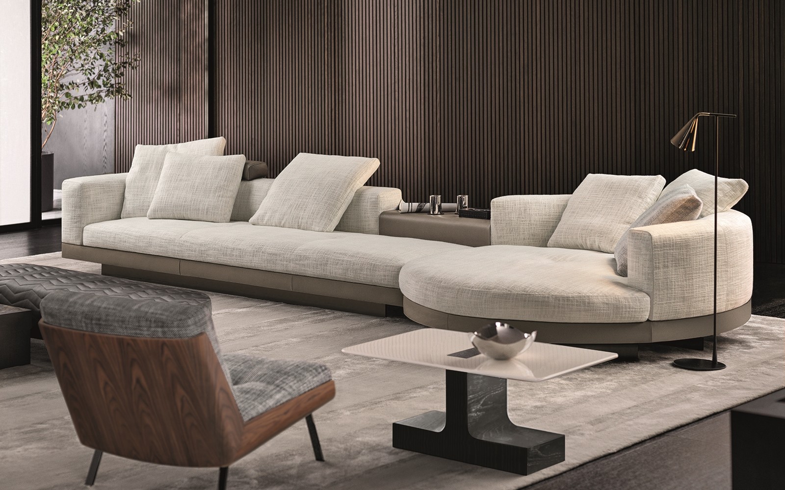 The seating system has a strong architectural appeal and pure lines, reminiscent of the spirit of mid-century America, and its exquisite aesthetics and design immediately attract the eye. Exquisite materials and exquisite details are cleverly combined to add a hint of haute couture to its design.