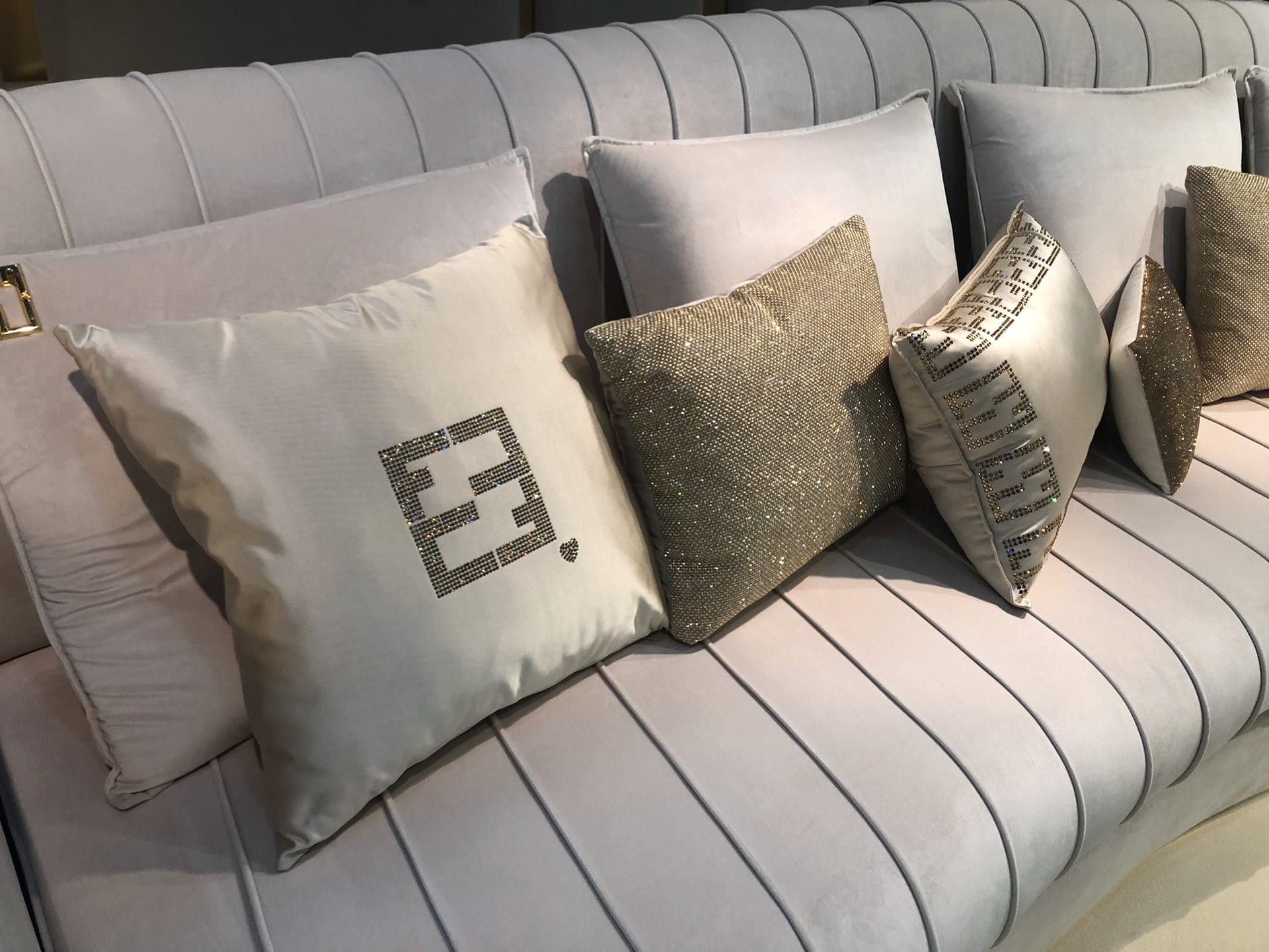 A remarkable wooden structure created by master craftsmen by hand, outstanding in its attention to detail. Sumptuously padded in various densities for the ultimate in style and comfort. Beautifully combining smooth and quilted upholstery in the finest pairing of ivory soft velvet. The sleek styling boasts a feature brass frame in a gold finish, completing this remarkable modern design. In 1 size as standard. Height 100 cm x width 300 cm x depth 160 cm, weight 300 kg. A. The 2 decorative scatter cushions also in velvet, are included. Available in an array of alternative luxury upholstery options and finishes, including traditional and faux leathers, suede and nubuck. Bespoke sizes available upon request. Prices will vary.