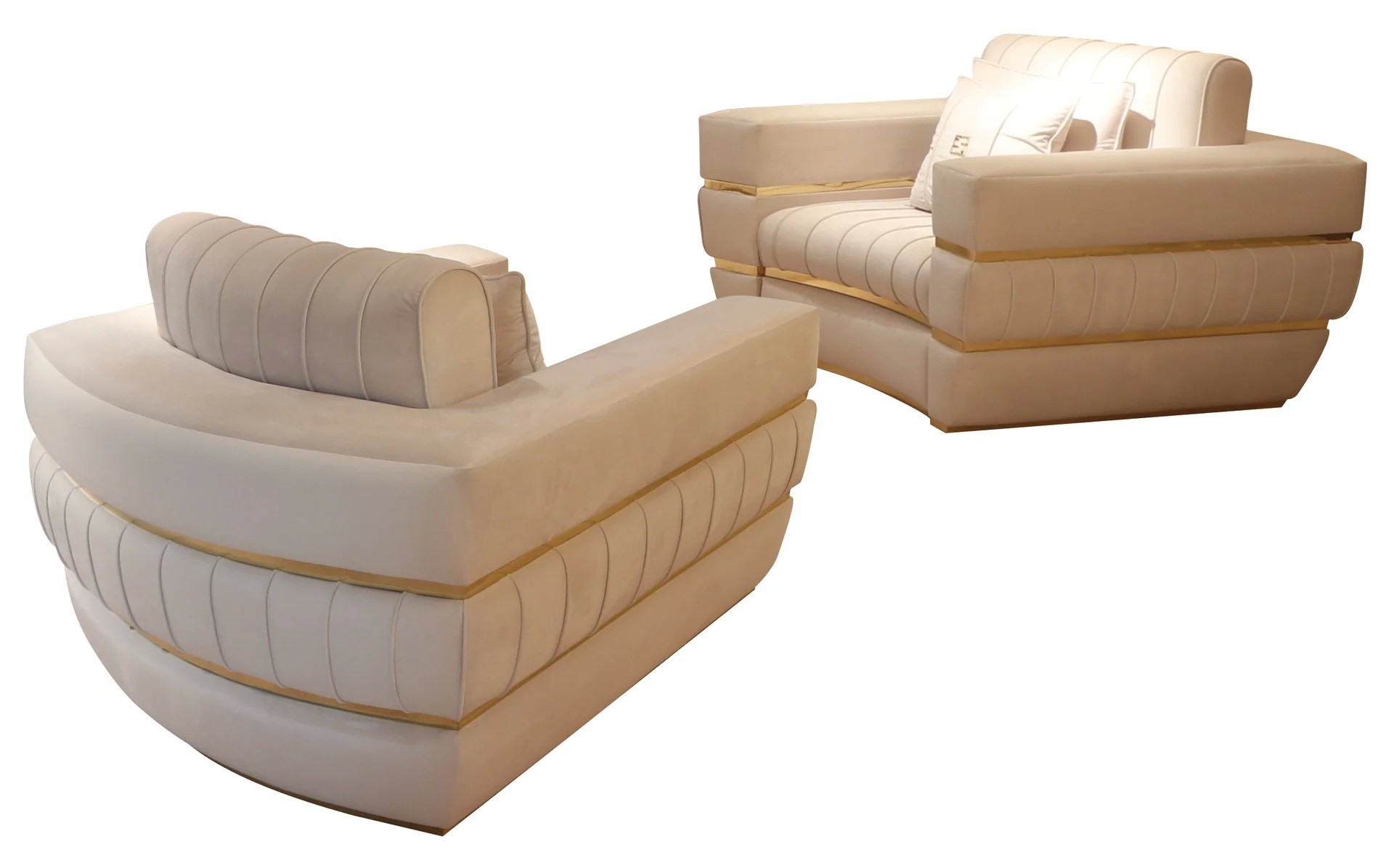 A remarkable wooden structure created by master craftsmen by hand, outstanding in its attention to detail. Sumptuously padded in various densities for the ultimate in style and comfort. Beautifully combining smooth and quilted upholstery in the finest pairing of ivory soft velvet. The sleek styling boasts a feature brass frame in a gold finish, completing this remarkable modern design. In 1 size as standard. Height 100 cm x width 145 cm x depth 160 cm, weight 70 kg. A. The 2 decorative scatter cushions also in velvet, are included. Available in an array of alternative luxury upholstery options and finishes, including traditional and faux leathers, suede and nubuck. Bespoke sizes available upon request. Prices will vary.