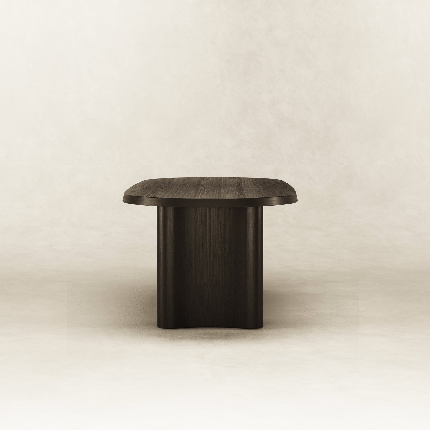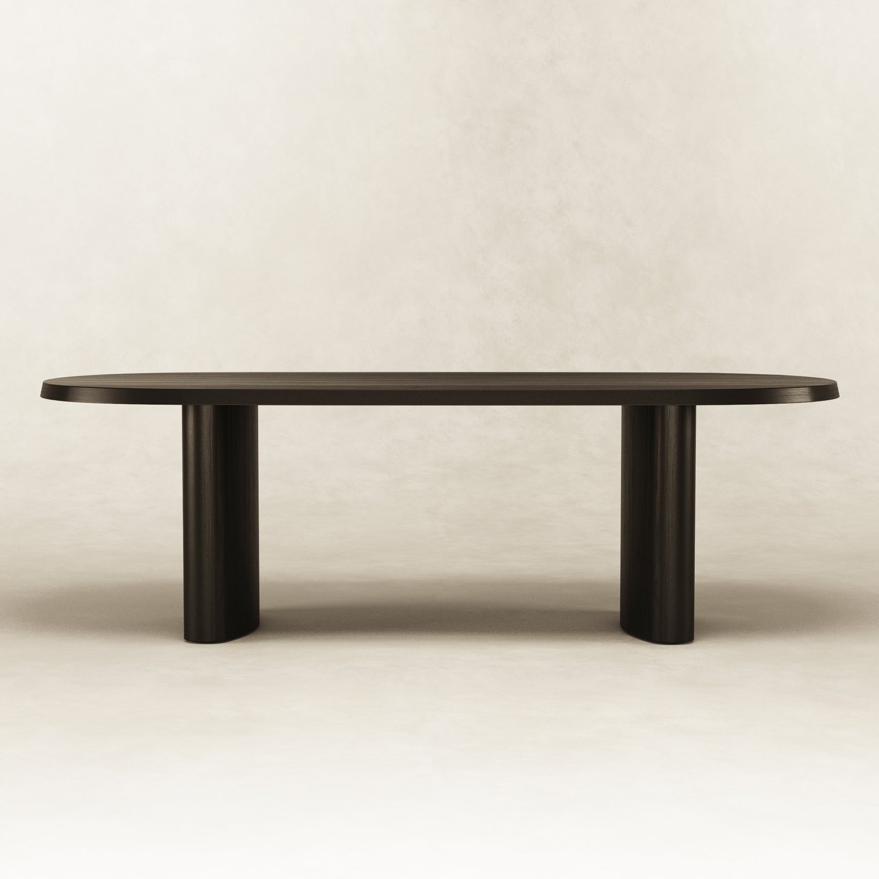 The graceful simplicity of the black dining table allows the American ash wood to be the hero that shines through the soft curved pillars. Spanning 2.4m in length, 6 seats can generously fit around.