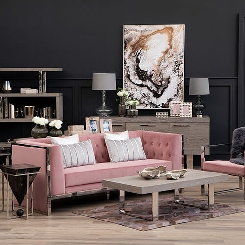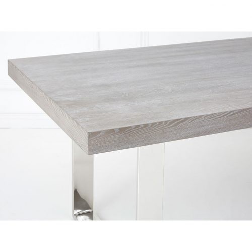 This dining table is an exquisite composite of natural elm wood and reflective steel.