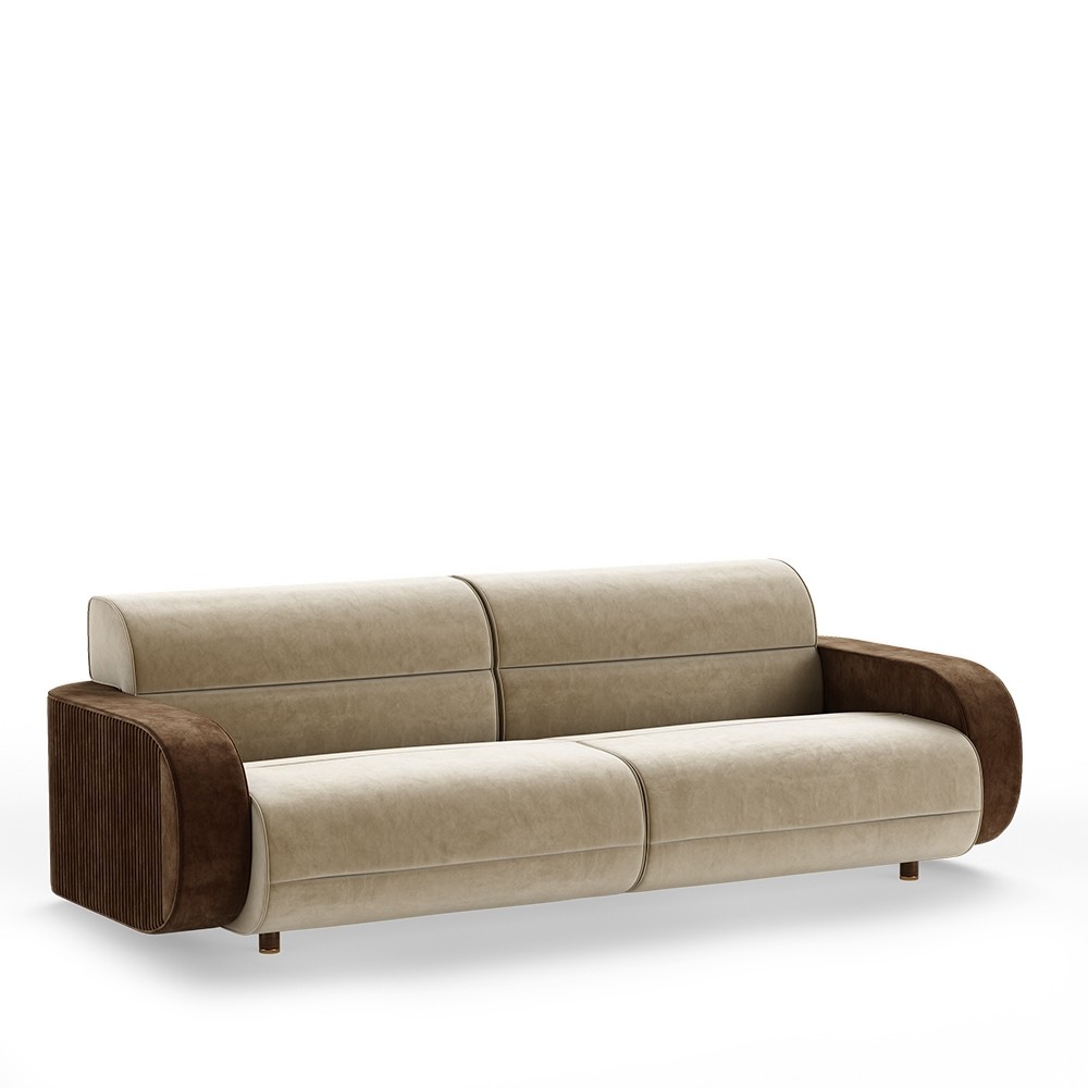 Rollins is the perfect sofa to fulfill your sophisticated mid- century project. The pattern design on the arms and back, combined with the brass base, made this sofa an elegant choice to be the spotlight in any living room.