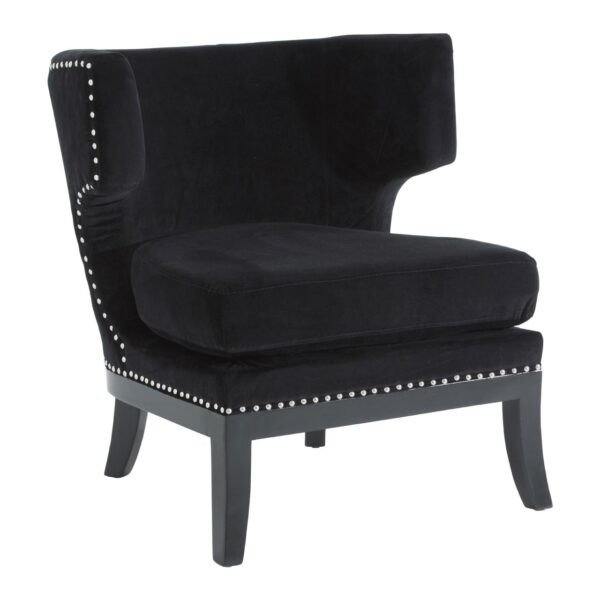 The armchair adds elegance and sophistication to any room setting. Upholstered in soft black velvet. style with the cushions for a chic stately look.