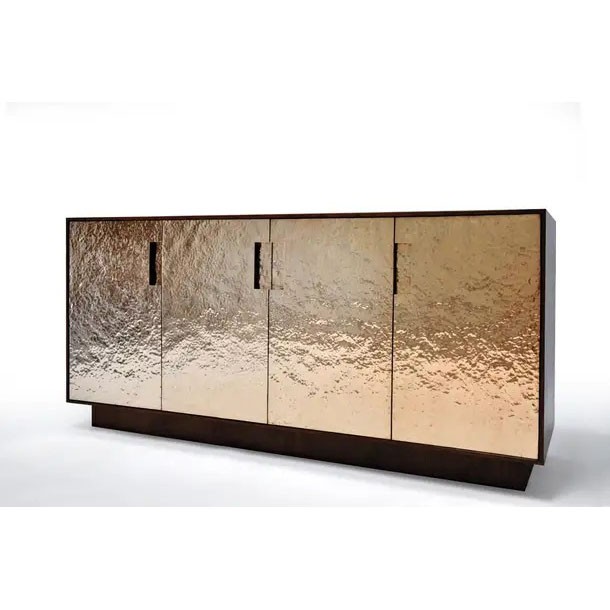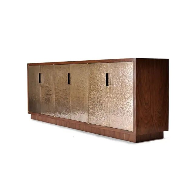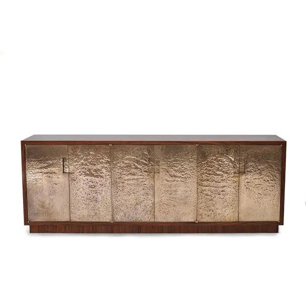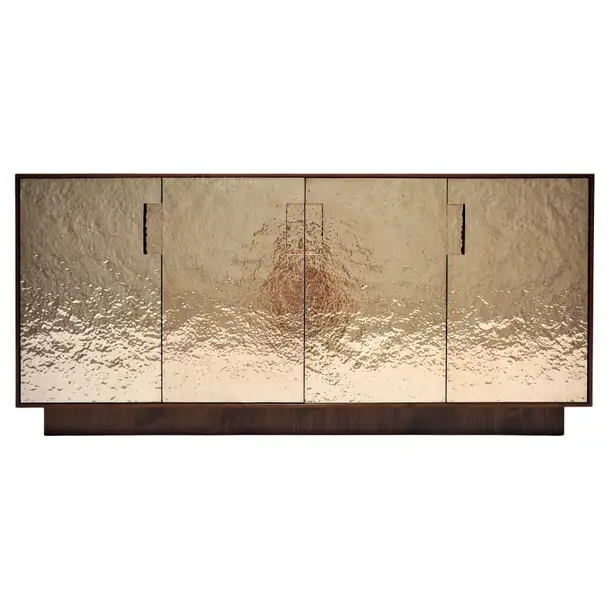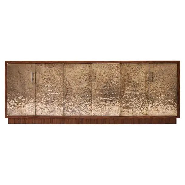 Hammered Bronze Fire Patina and Walnut Sideboard