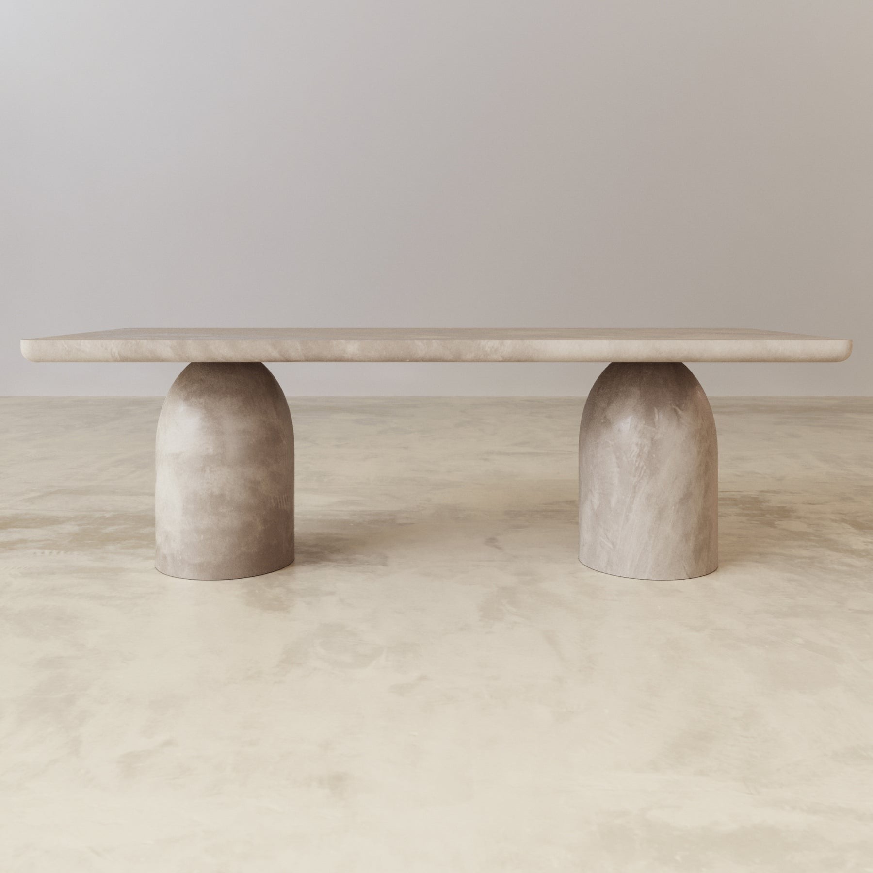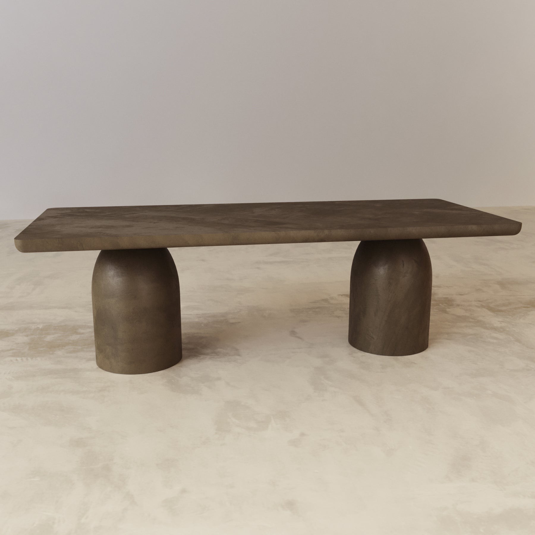 The Bullet dining table evokes architectural structure and form with its featured domed base being the centre of attention. Crafted by hand from a screeded micro cement, the dining table is neutral in finish giving it a warm look that will blend in with most colour schemes. An intricate design to manufacture, ensuring stability, form and aesthetic appeal all in one magnificent table. Measuring a generous 2.4m in length, 6-8 seats should fit comfortably around this designer table.
