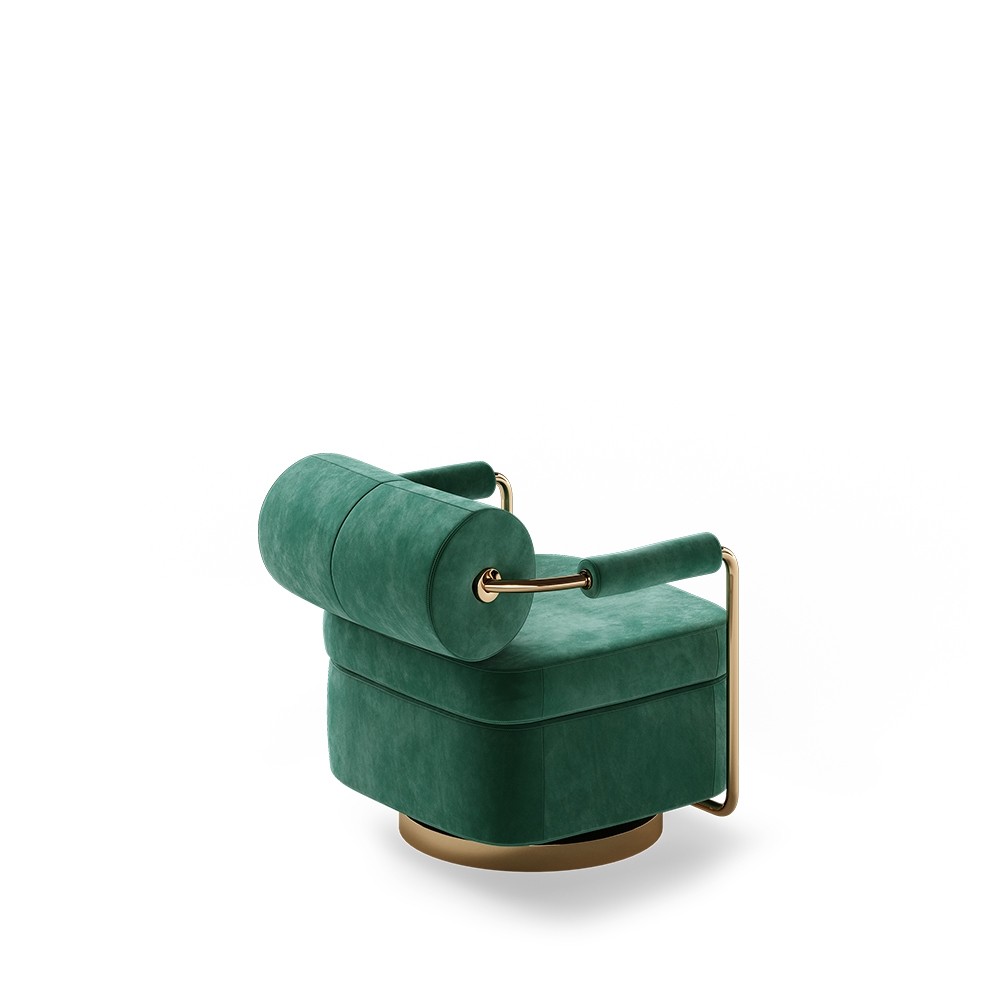 The Anderson armchair is the materialization of midcentury modern style. With geometric shapes that merge with brass details, this armchair will bring a vintage touch to your projects.