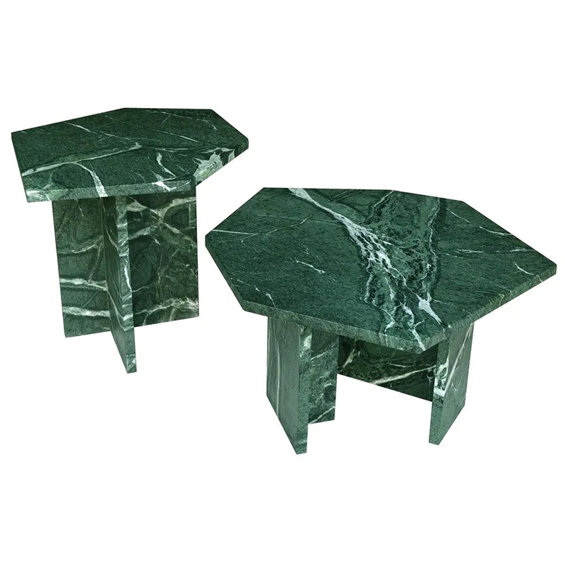 Italian design style set of two coffee or nesting tables in Italian Green marble handcrafted by our craftmen.