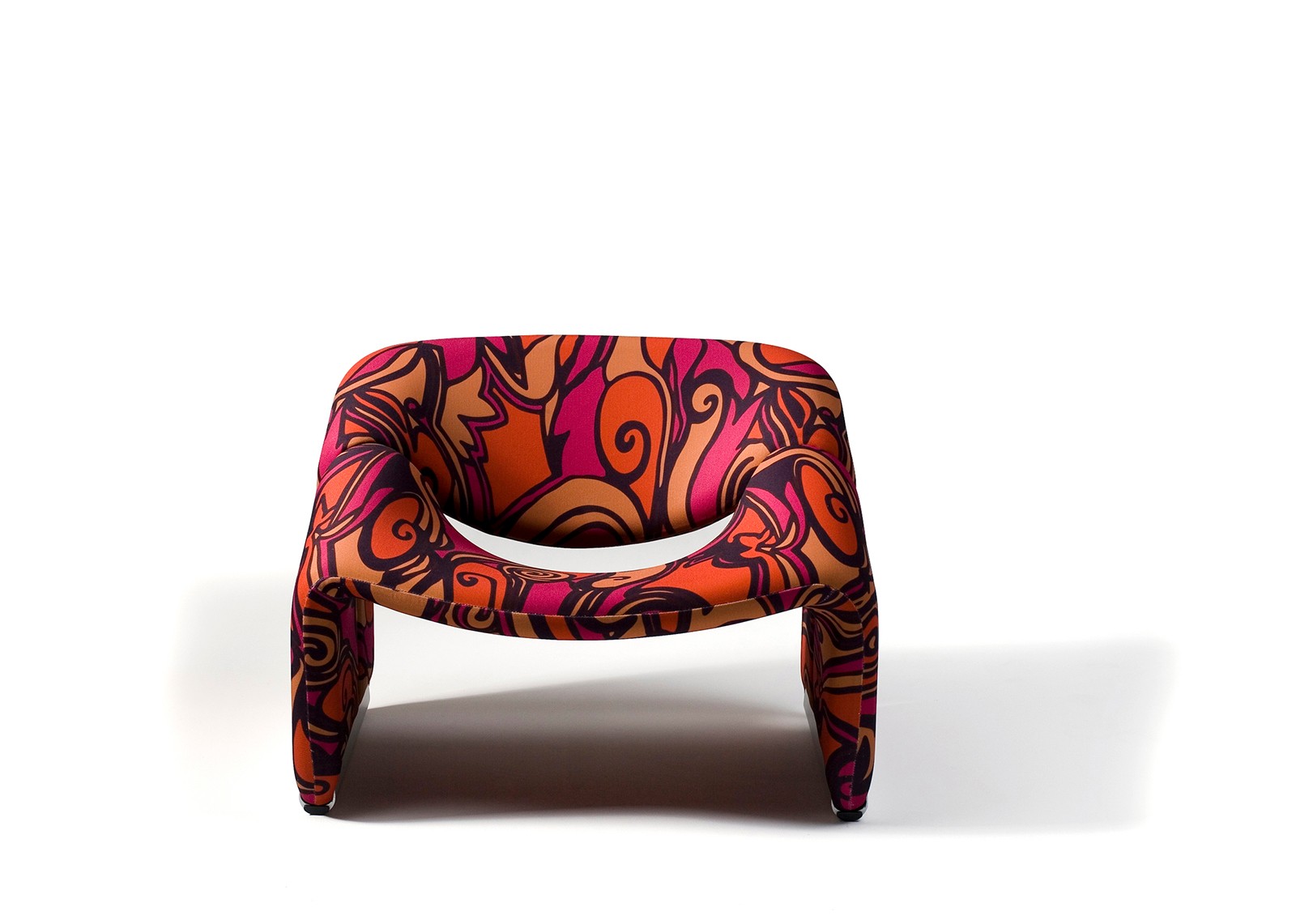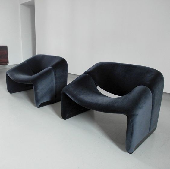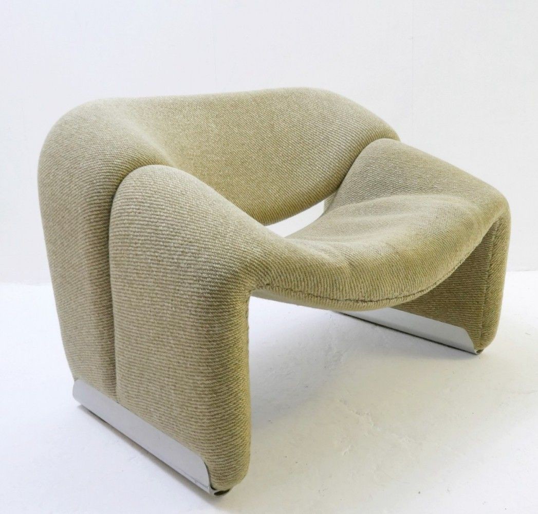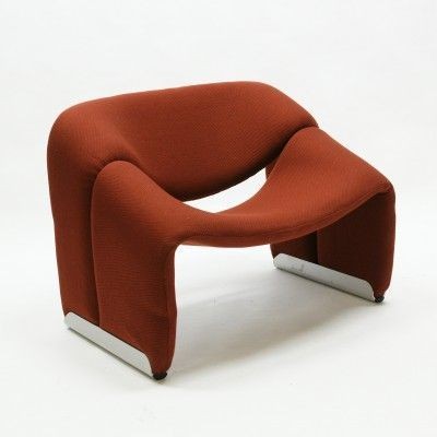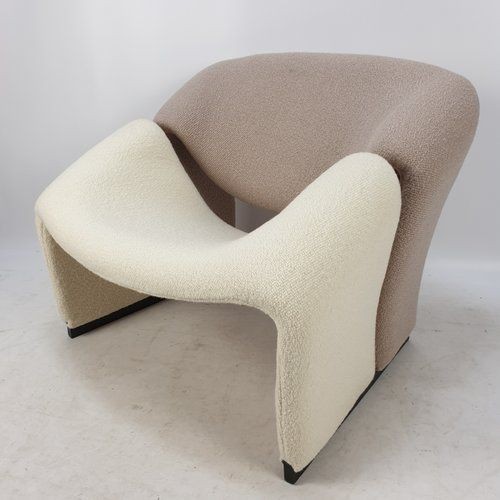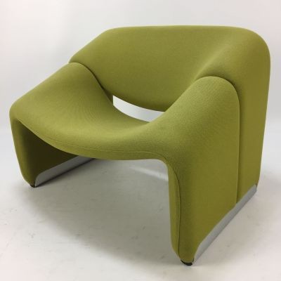 Cute and very comfortable "M" chair, designed in 1966. This is the first edition. The curves are beautiful. Decorated only in lovely quality wool fabric (leather and tech cloth, custom fabric), the chair is small but very comfortable. A piece of art in your room!