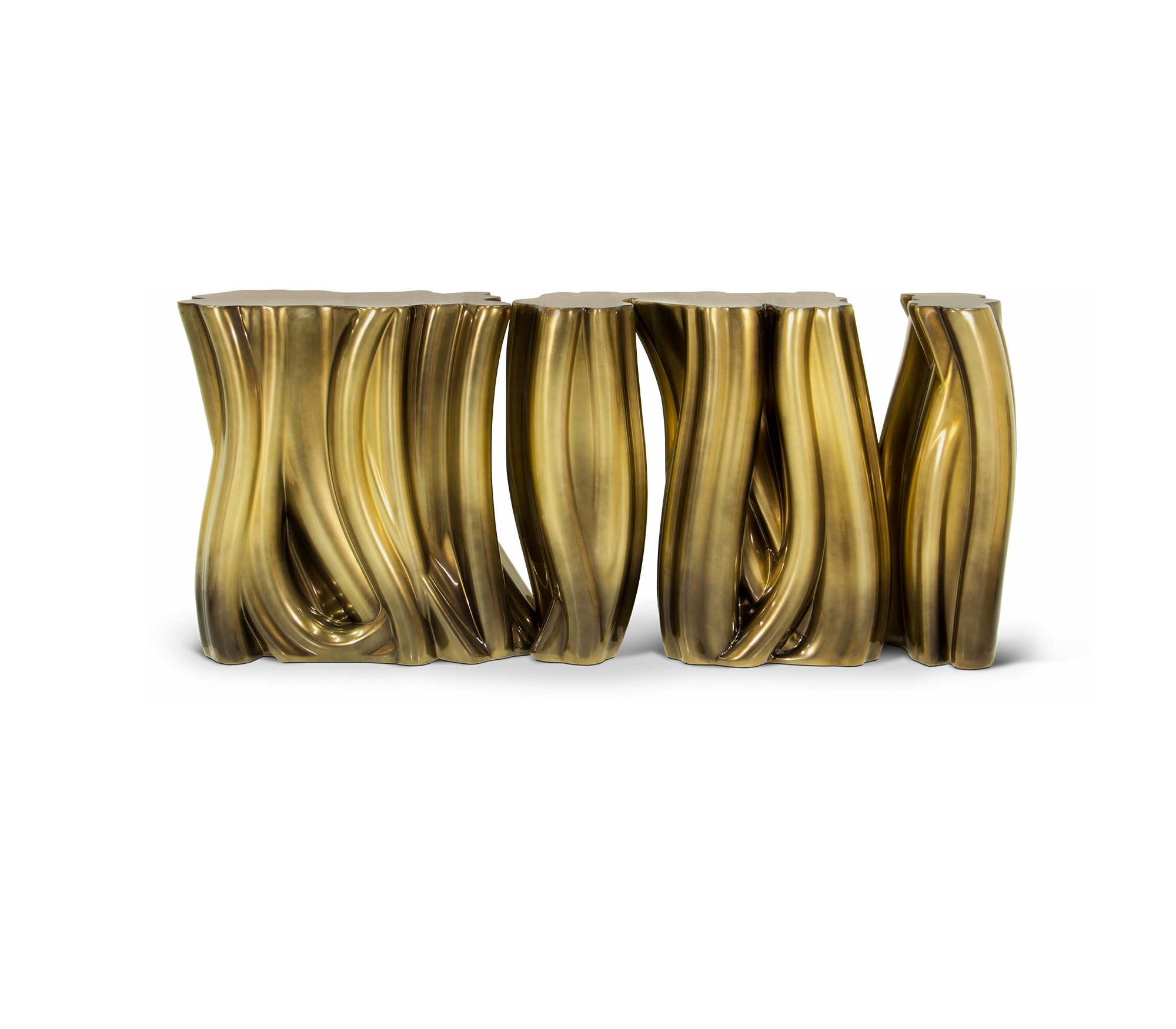 A demonstration of both imagination and strong design skills, the Monochrome console is a remarkable piece that stands out in any room or setting. Perfect for living spaces grounded in contemporary style as they embrace careful craftsmanship, this console expresses a leading edge outlook through its daring curvy shapes and gold tones.