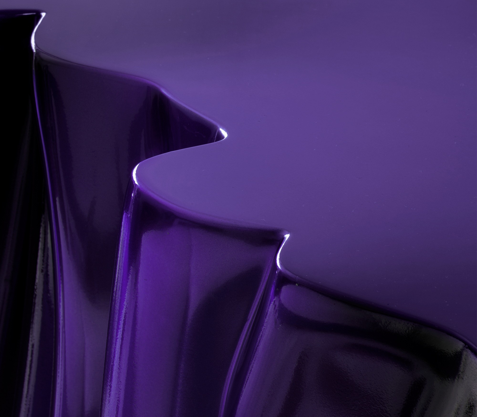 Molded resin filled with expandable polyurethane, High gloss electric purple translucid.