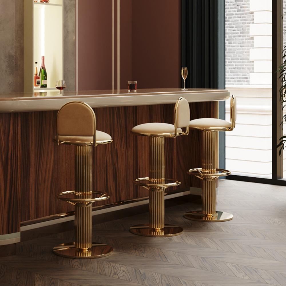 The Chuck bar chair combines attractive design elements from mid-century: the robust foot in brass incorporates the edginess of golden years, while the leather seat brings back the nostalgia of vintage designs. It is the perfect fit for any bold kitchen or bar.