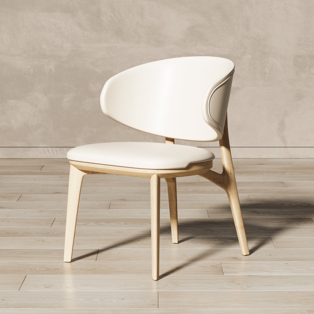 Contemporary sophistication is provided by the curved silhouetfes that defines the Elypse Dining Chair. The uniquely curved and rounded back rest not only offers comfort and support, it is the centre of attraction. Upholstered in a durable, long lasting vegan leather on a solid bleached China ash wood frame, the Elypse Dining Chair will last the test of time. Suitable and graded for commercial use.