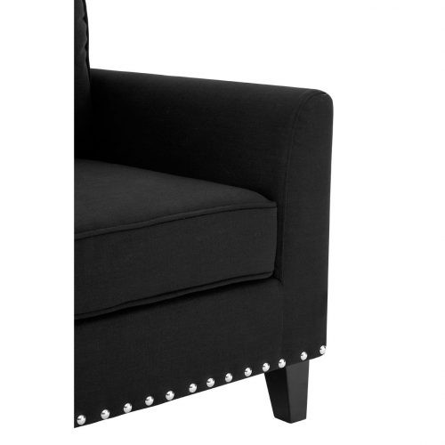 This 100% polyester black/grey sofa has an exquisite level of class. The skirt is decorated with a stud detail giving the couch a classic contemporary look. Between the exceedingly comfy cushioning and the silhouette-black/grey upholstery, the elegant 3 seater sofa is one of the most striking pieces in the OEHOME furniture range.