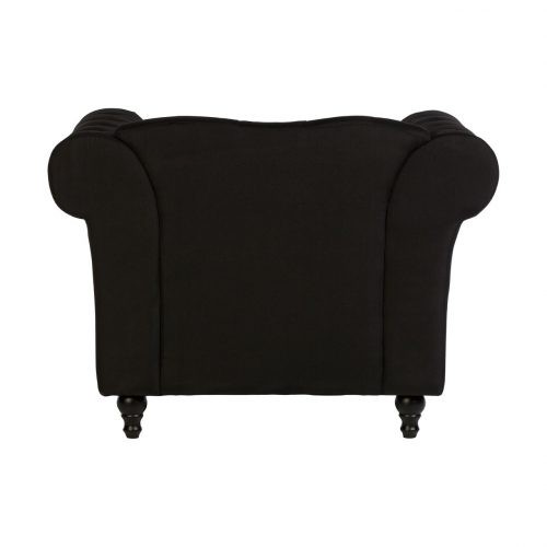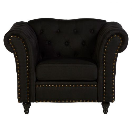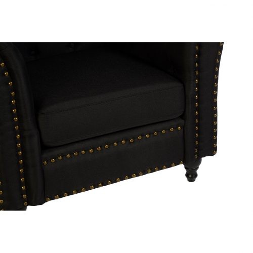 Beautiful black fabric upholstery with renewable eucalyptus wood, button tufting and stud detail.