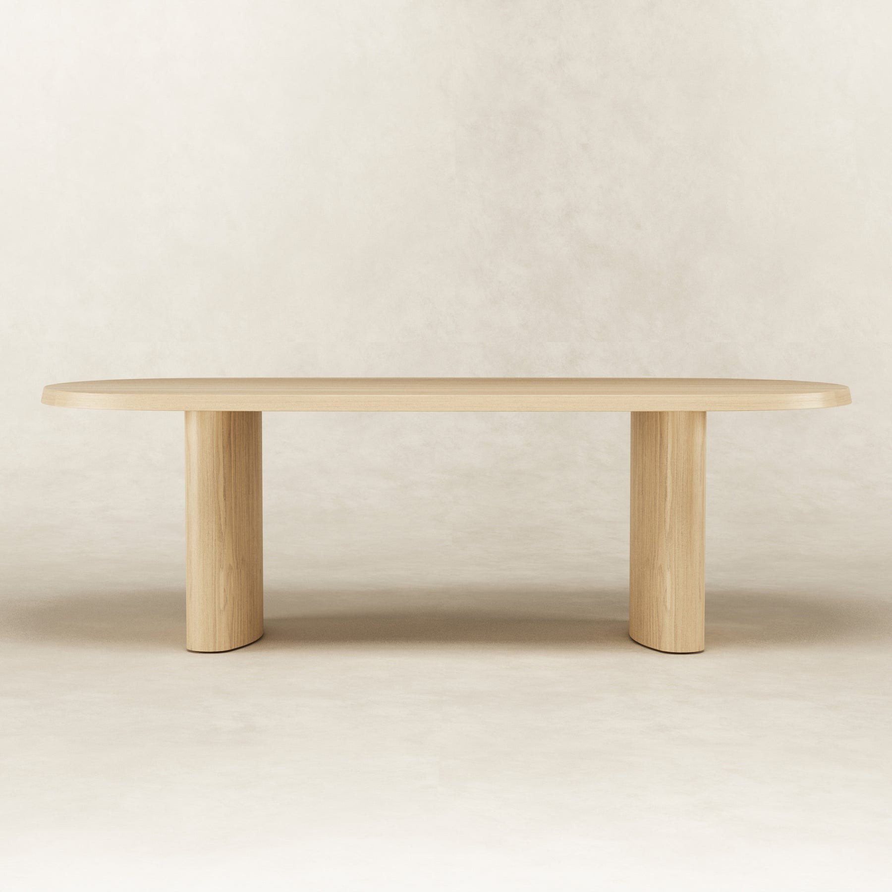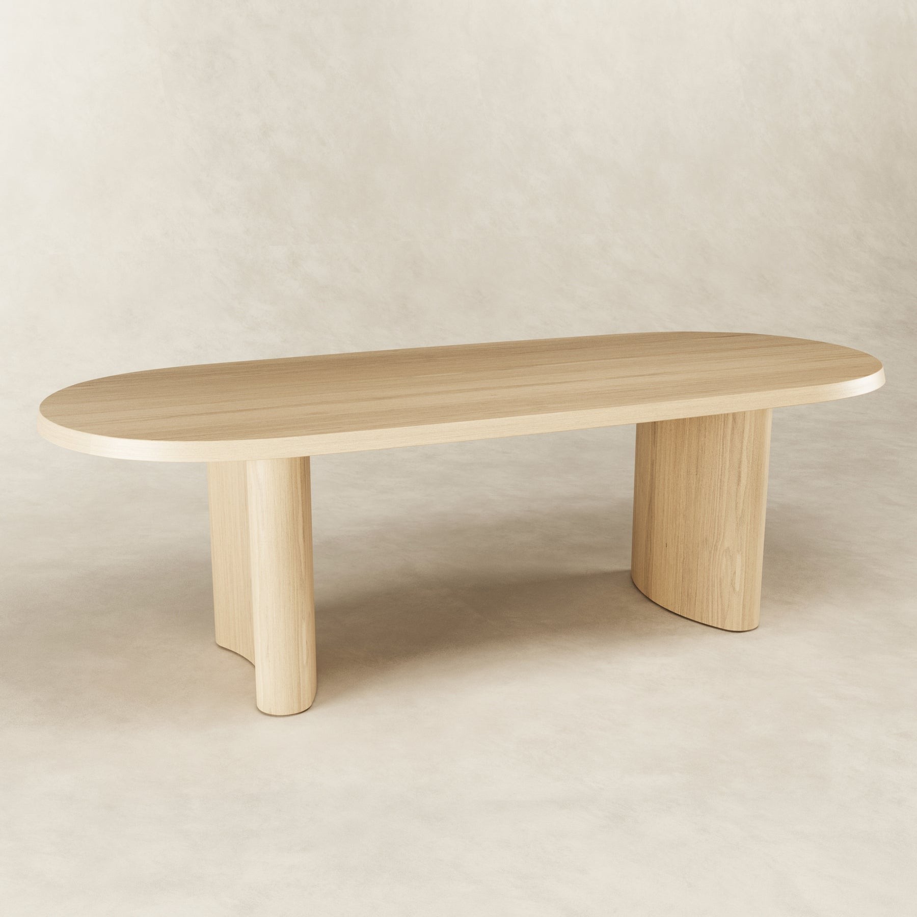 The graceful simplicity of the Ash dining table allows the bleached American ash wood to be the hero that shines through the soft curved pillars. Spanning 2.4m in length, 6 seats can generously fit around.