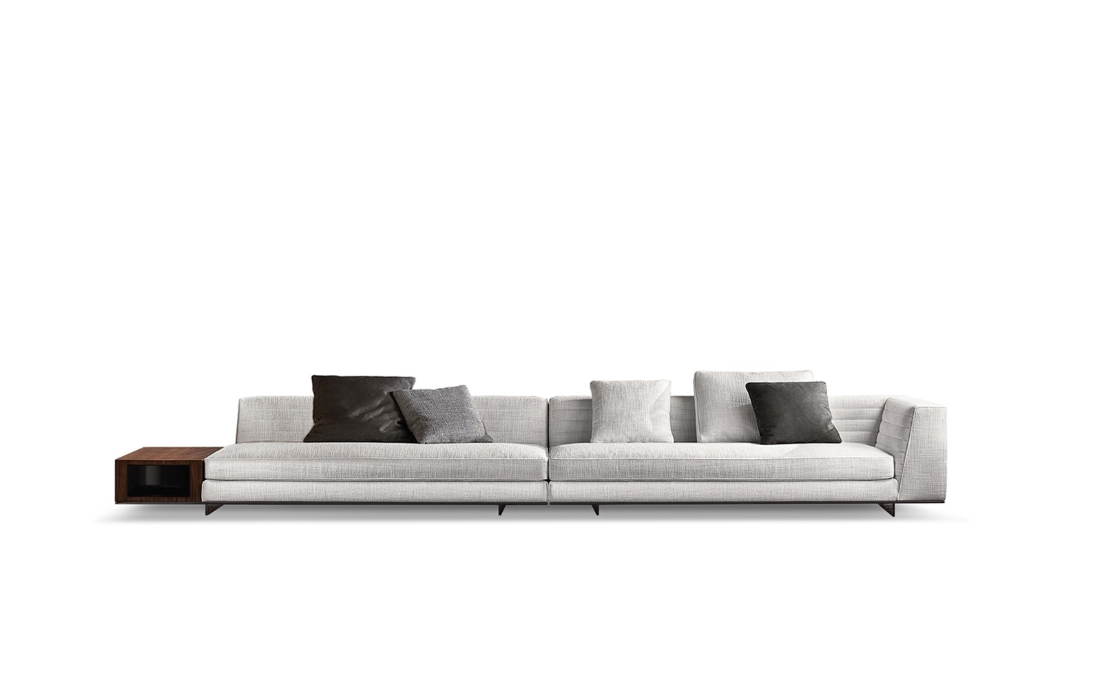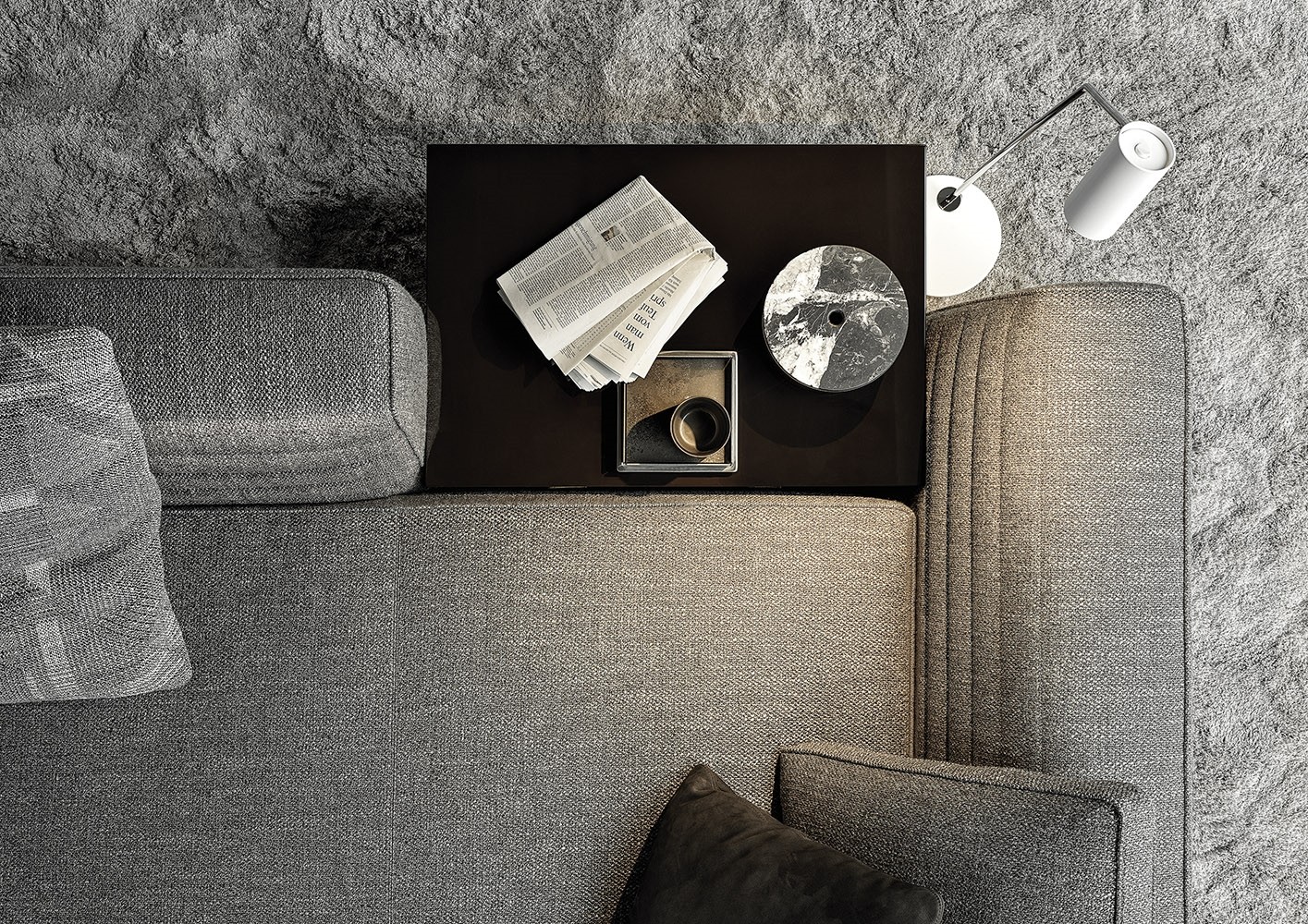 The elements can be freely customised with high and low backrests, different types of armrests and the option of adding elements functioning as tops and containers, jutting out at the back, or at the end, next to the seat. A system, or rather a super system, capable of creating countless interpretations and configurations, for both residential and hospitality spaces.