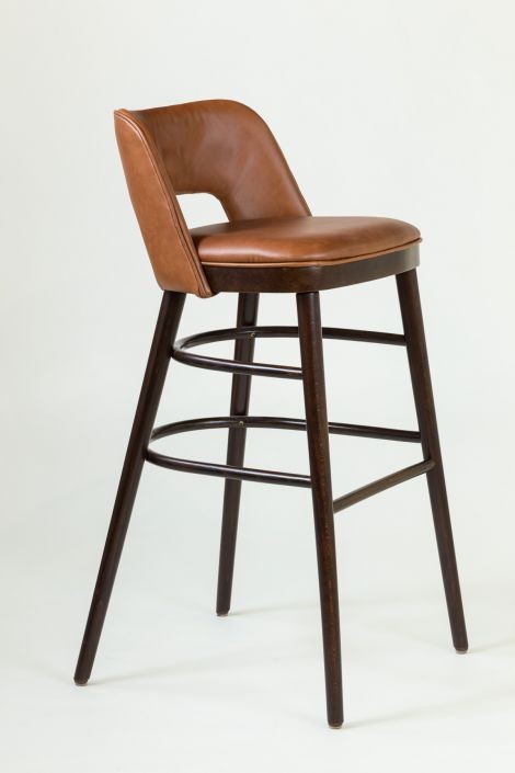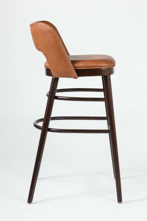 The Low Back Barstool offers an upholstered seat and lower backrest, with an unique aesthetic for both cafe and restaurant use.