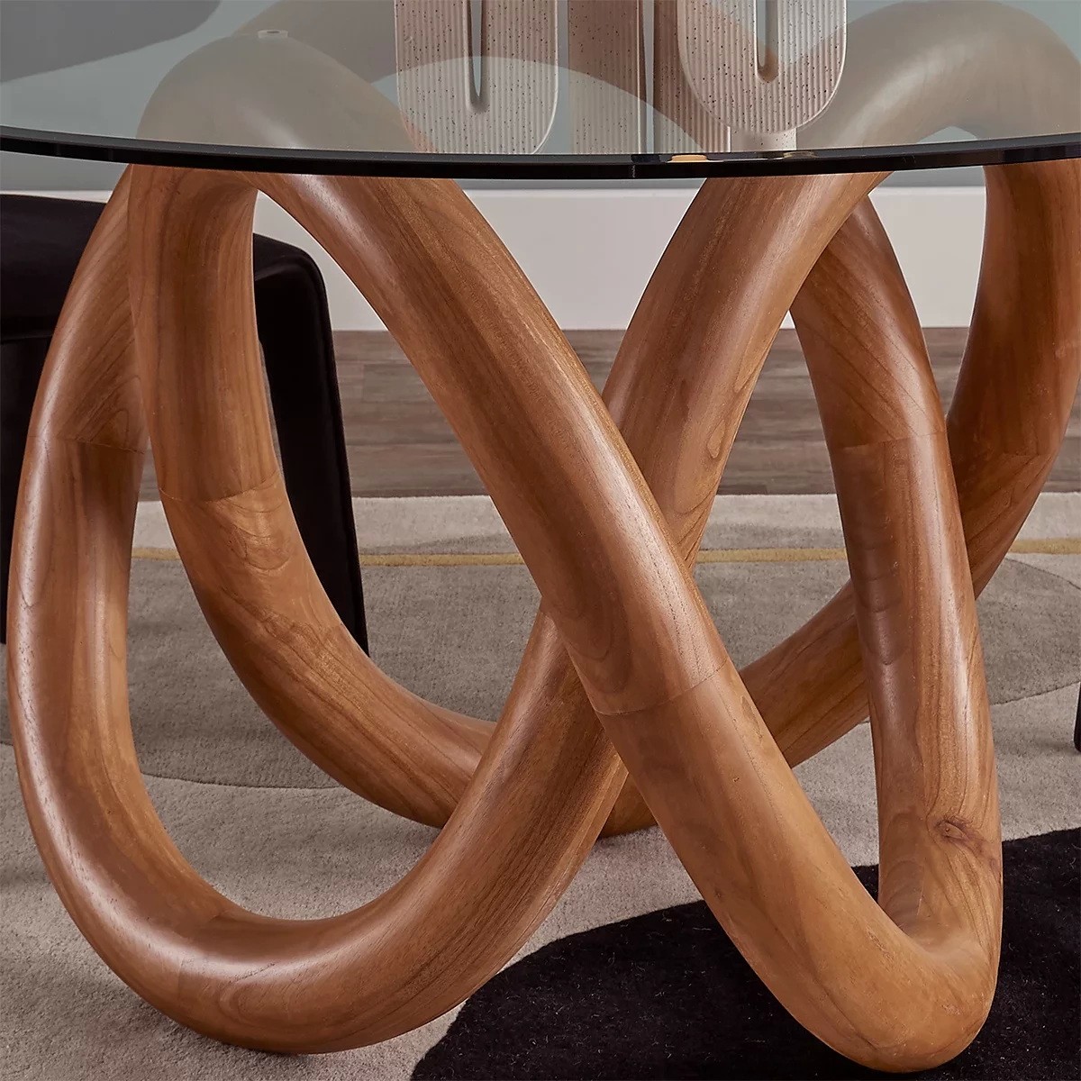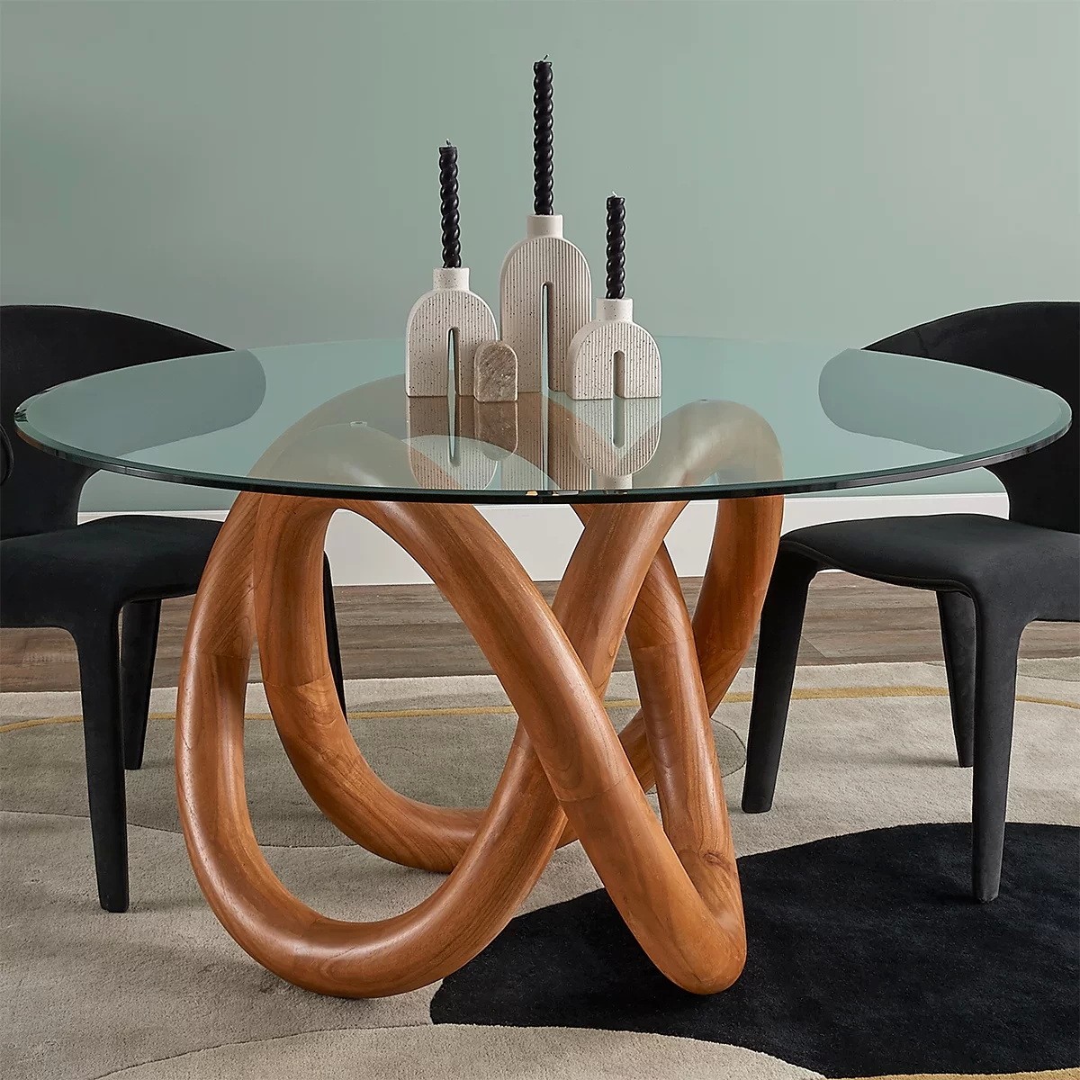 If your space is feeling static, our Anduin Dining Table offers a solution. Unobscured by the glass tabletop, its sculptural, natural wood base provides a sprawling and dynamic focal point. Rich with texture and depth, this table marries form and function to complement any modern or contemporary home.