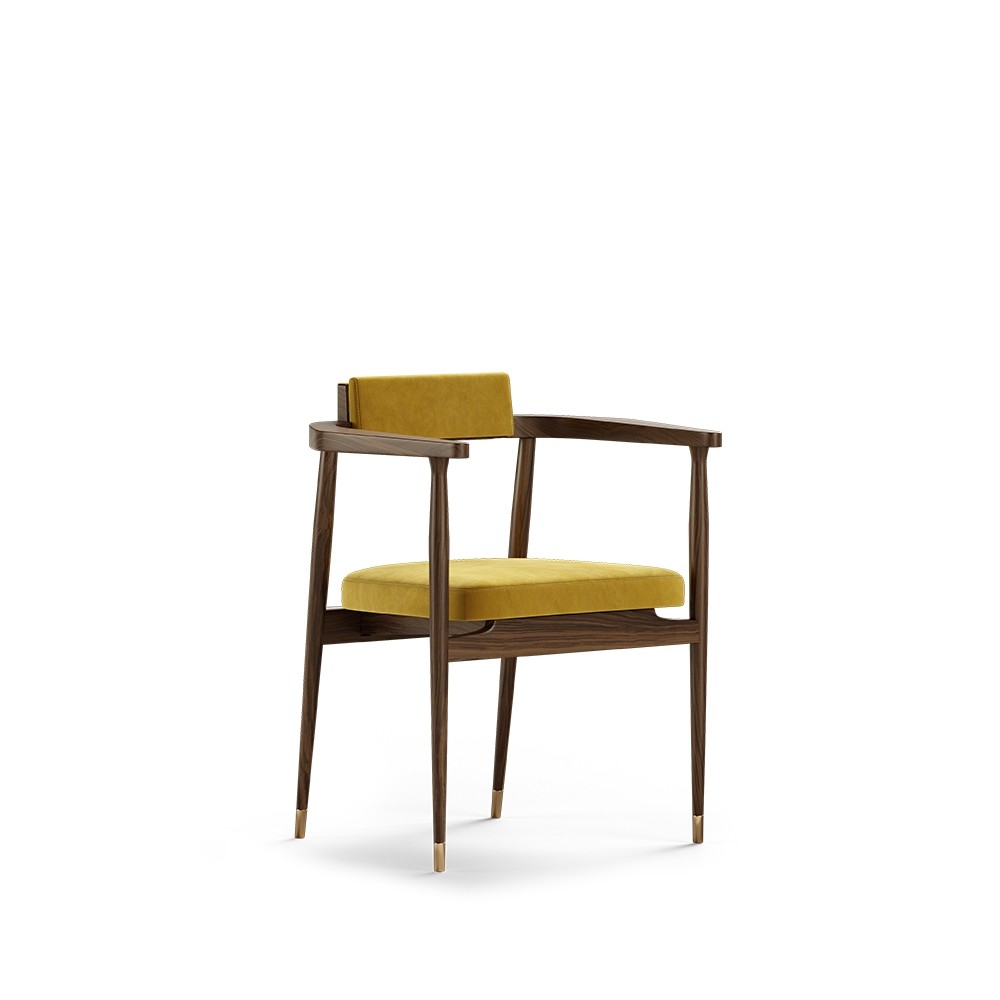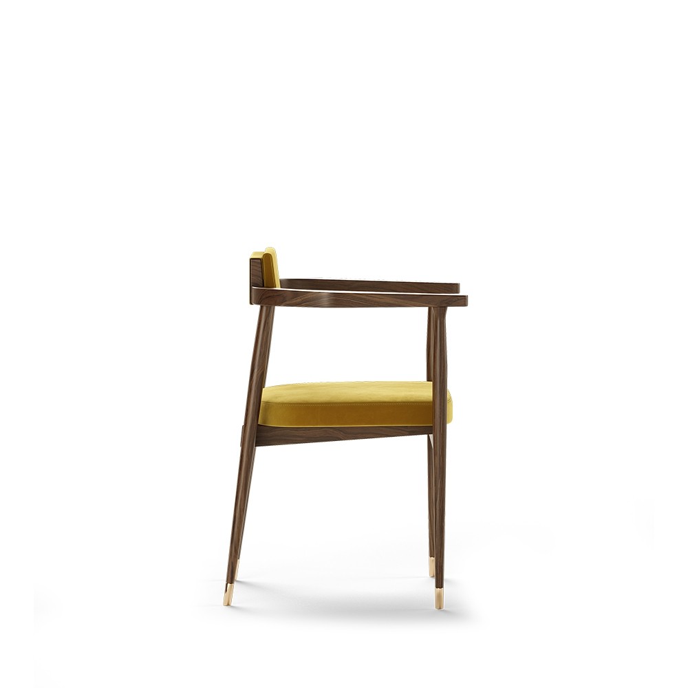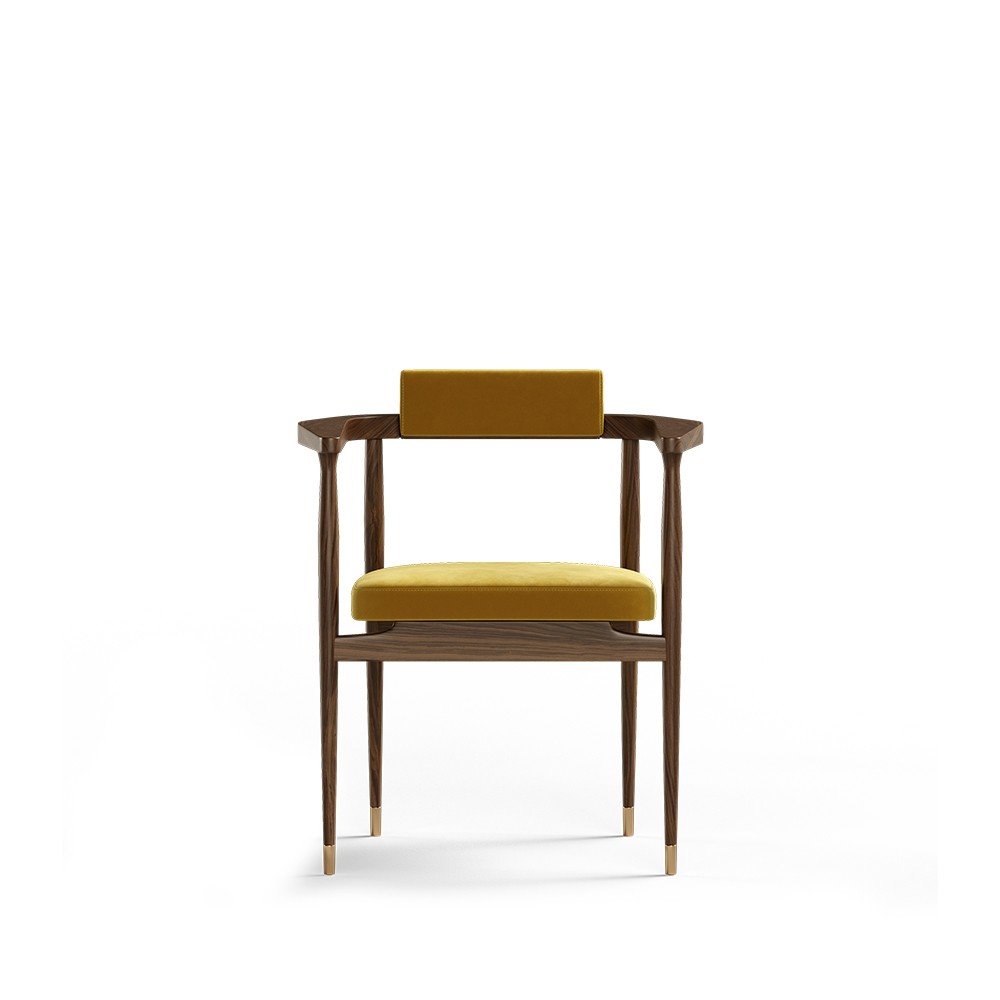 Inspired by one of the cinema starts, the Gardner dining chair was thought to be the elegant touch in most contemporary projects. Made of solid walnut wood, the polished brass details give a luxurious touch that emphasizes its beauty.